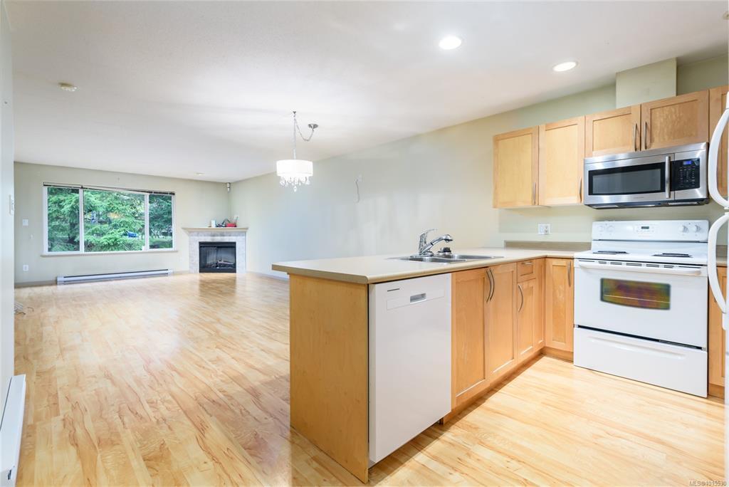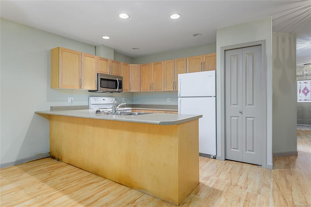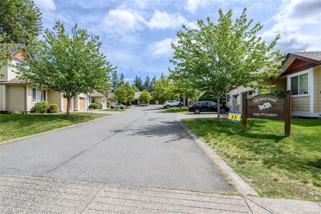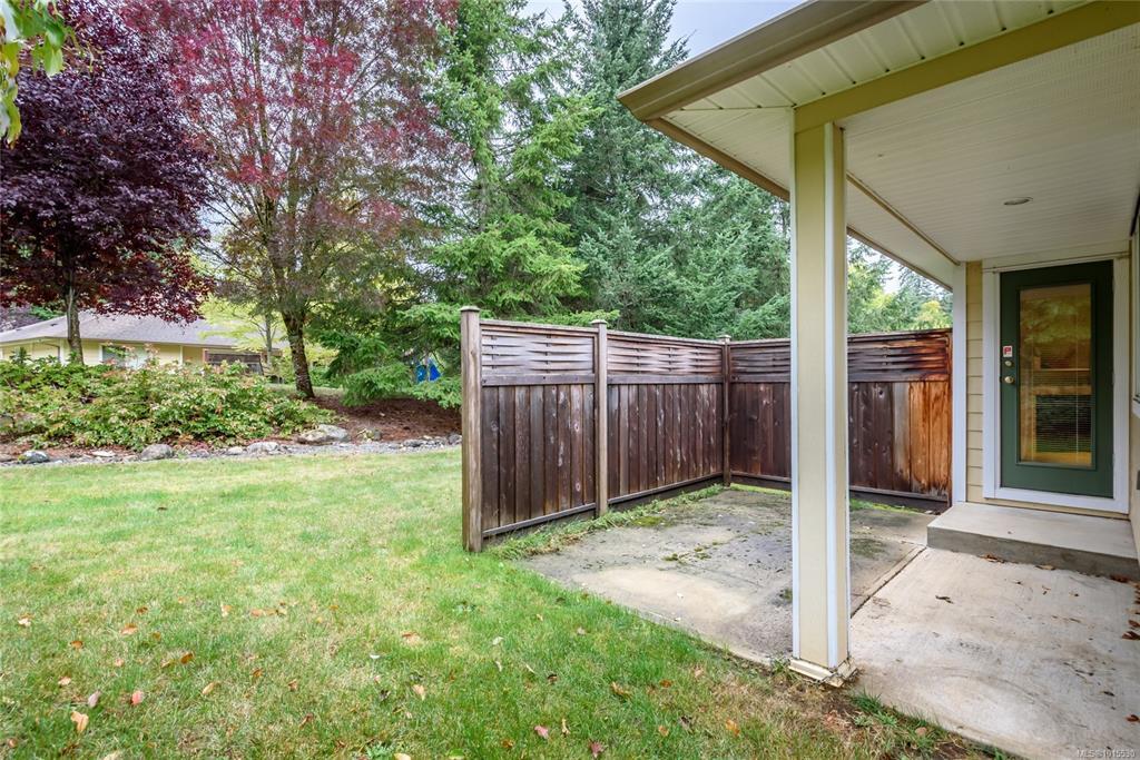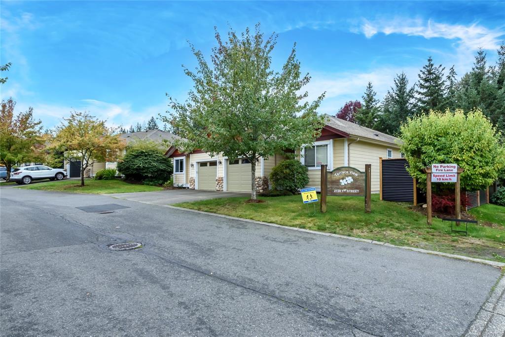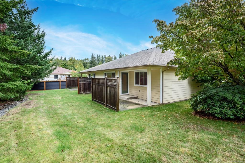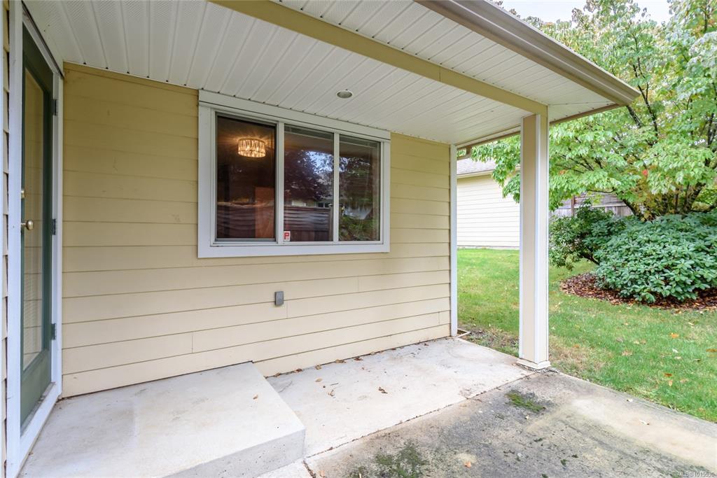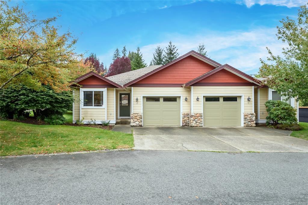 Well laid out 3 bedroom, 2 bath rancher patio home that's ready to go. This open floor plan features a large kitchen with ample cupboard space opening to the dining and living areas. Maple cabinets, pantry, tons of counter space with eating bar over-hang. Corner electric fireplace in the living room with access to the patio. Large primary bedroom with walk in closet and ensuite. Laundry room has additional cupboard space. Home is on a crawl space, single car garage w/opener. Puntledge Terrace is close to the river, walking trails and shopping. Monthly strata fee is $468.00.