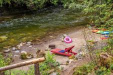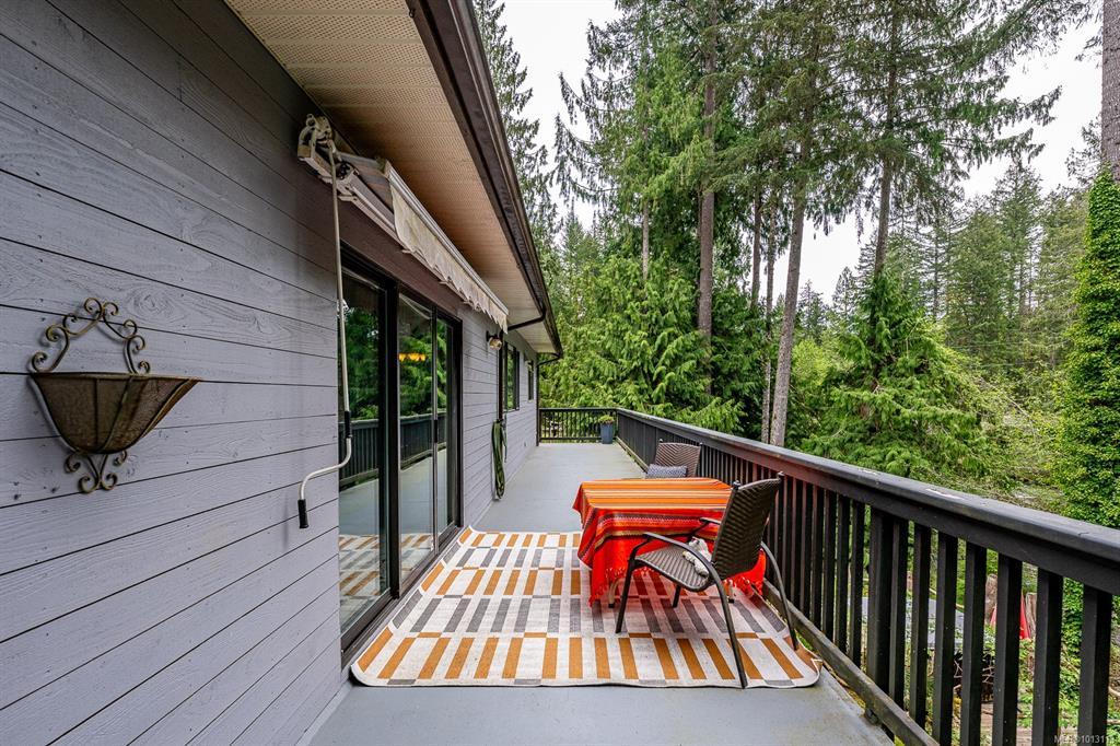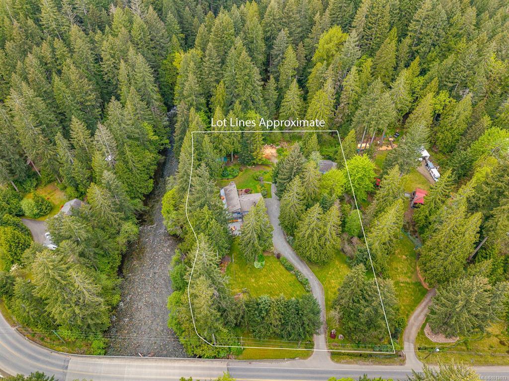 RIVERFRONT OASIS! This 1.70-acre property in the sought-after Forbidden Plateau area sits along Browns River, featuring a private beach & swimming hole. Spend summer kayaking or relaxing by the water. Enjoy breathtaking views from the wrap-around deck, concrete patio, gazebo, fire pits, or the hot tub with an outdoor shower. The home offers versatile living. Upstairs, there are 3 bed/2 bath, a kitchen, & dining/living room w/ vaulted ceilings, skylights, & a large deck. The lower level includes 3 more bed/2 baths, & 2 studio suites w/ kitchens, living areas, & separate outdoor access—perfect for multi-family living or rental income. Additional features include a 738 sq ft workshop, a wood stove that heats the entire home, a 489 sq ft hair studio w/ its own septic & hydro meter, plus two additional studios & yurt currently used as a woodworking shop. The landscaped yard w/ 50+ rhodos, fruit trees, gardens, & walking trails from your backyard. This incredible property is waiting for you!
