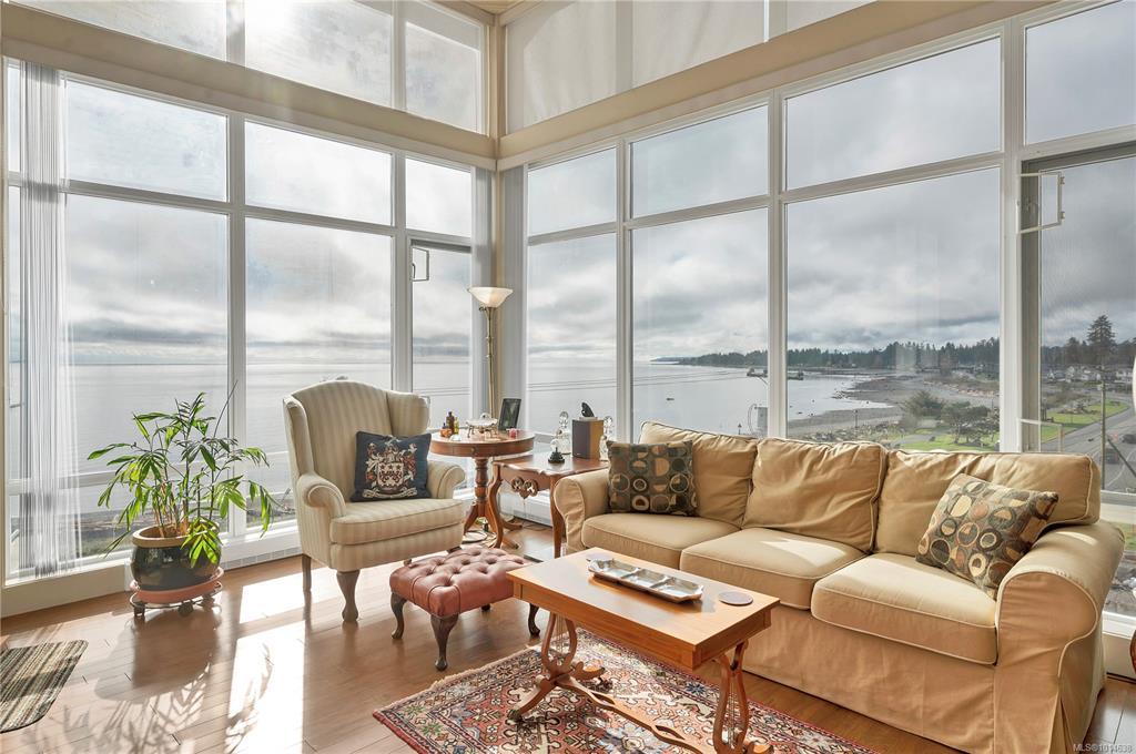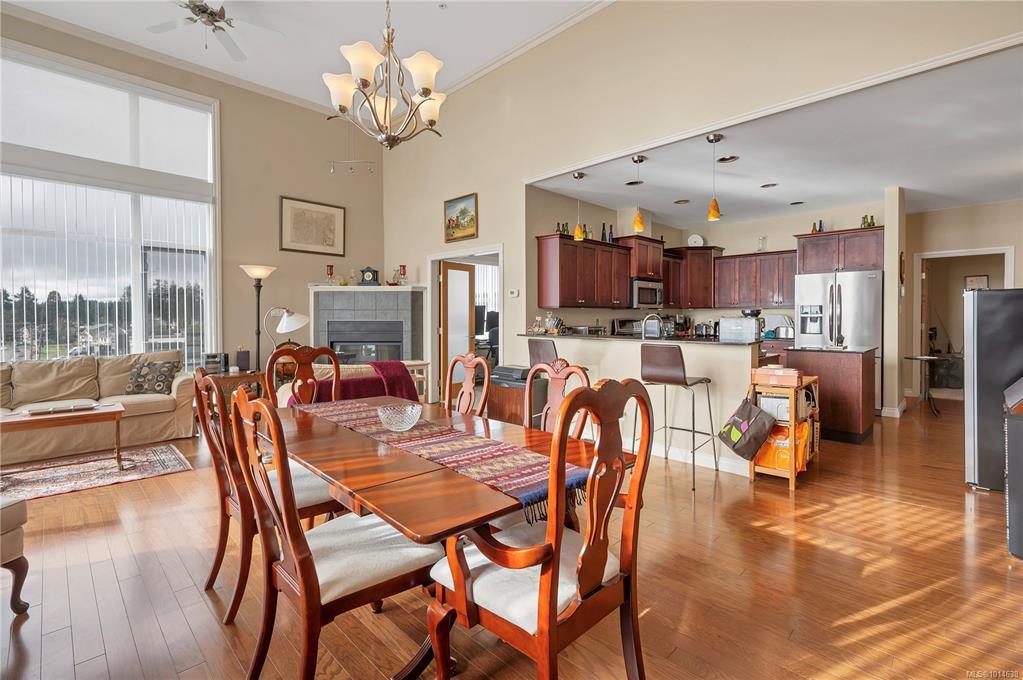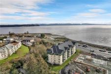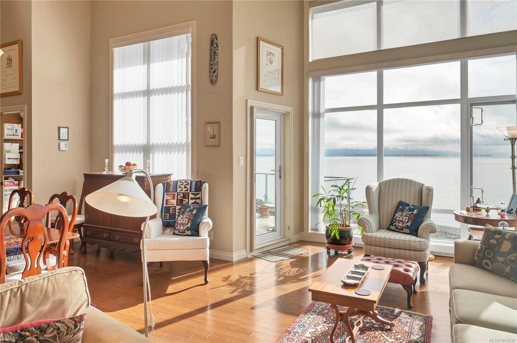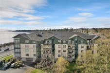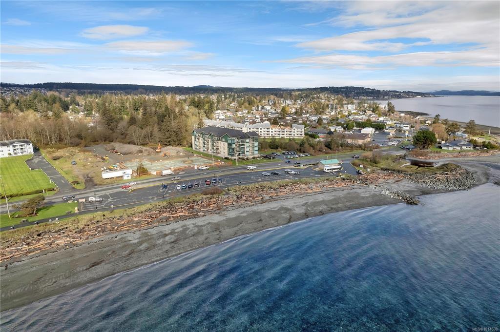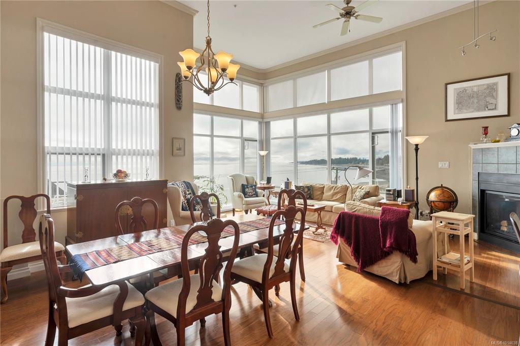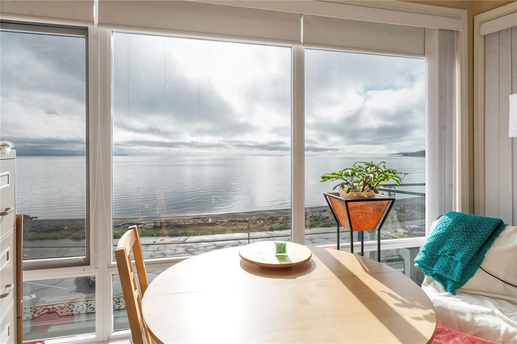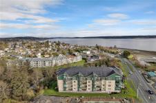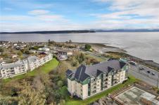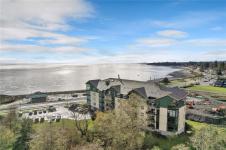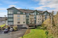 This beautifully appointed 3-bedroom, 2-bathroom condo in the coveted Willows Oceanside complex offers semi oceanfront living with stunning views of the Discovery Islands and passing marine traffic. Floor-to-ceiling windows flood the open-concept space with natural light, while rich hardwood floors, granite countertops, and maple cabinetry add warmth and elegance. The kitchen includes a handy island and flows into the living area anchored by a cozy gas fireplace - perfect for relaxed coastal living.