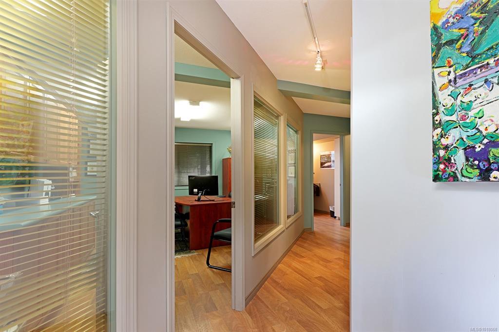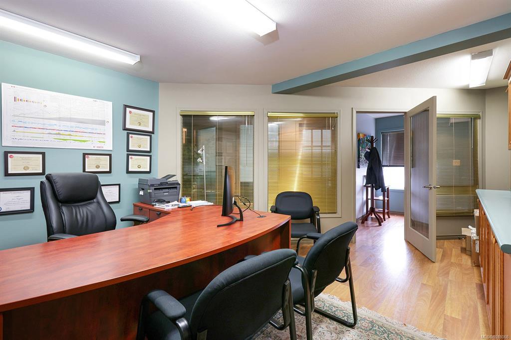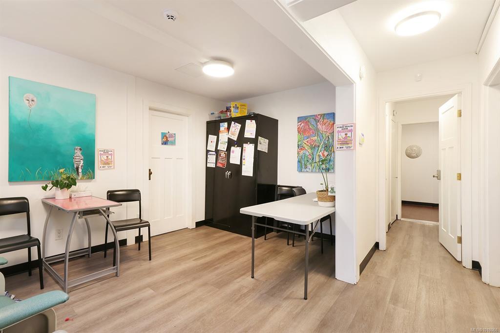 Unbeatable downtown Courtenay location with exceptional flexibility and potential! This 3,781 sqft C-1 zoned building features 2 commercial and 1 residential units, 9 on site parking stalls, rear lane access, and abundant street parking. The primary commercial space offers an accessible entrance, bright reception area, 6 private offices, and a spacious meeting room with a cozy gas fireplace. The second unit, with both front and rear access, includes a functional layout with reception, 2 offices, a kitchenette, and a washroom. Upstairs, you'll find a fully renovated 2 bedroom apartment with vaulted ceilings, a gas fireplace, modern open concept kitchen and living area, a stylish 4 piece bath, laundry, and a private back deck with peaceful mountain views. Recent updates include new fencing, updated HVAC, new hot water tanks and Poly-B remediation. A rare opportunity to invest, live, and work in a high visibility, high demand area with solid income potential and excellent versatility.