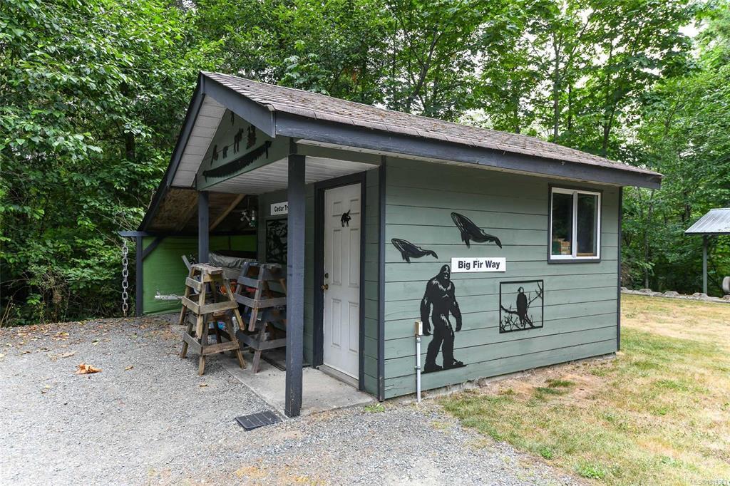 Enjoy an acre of private tranquility surrounded by mature trees in this beautifully updated 3-bedroom home. Thoughtfully renovated with new windows, kitchen, flooring, and energy-efficient mini-split A/C, it's move-in ready for modern living. Relax on the spacious 10x21 ft covered deck overlooking nature - no rear neighbours, just peace and quiet backing onto the E&N right of way. The 667 sq ft workshop includes a large overhead door and 220V power, ideal for hobbies or storage. A separate 13x24 ft powered shelter is perfect for your boat or RV, plus there's another workshop/storage building for extra versatility. Conveniently located minutes south of the mall, this property offers the best of both worlds - seclusion and convenience. With space to build a second home, everything's already done for you-simply move In and enjoy