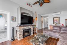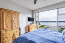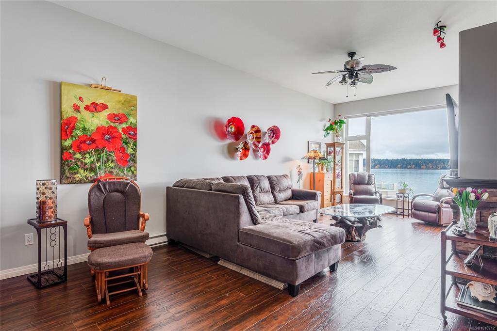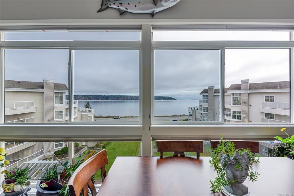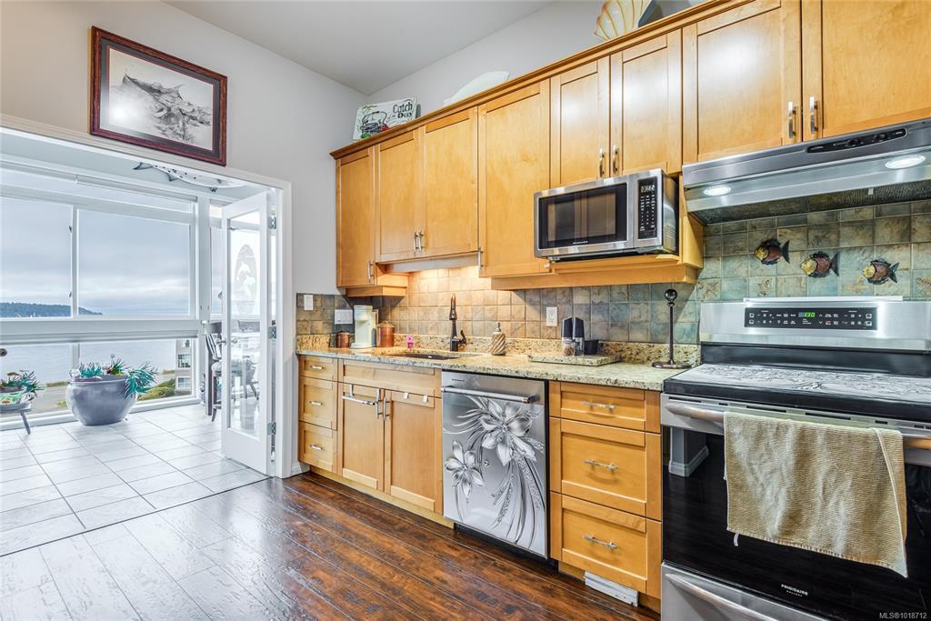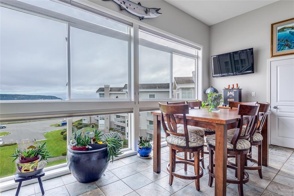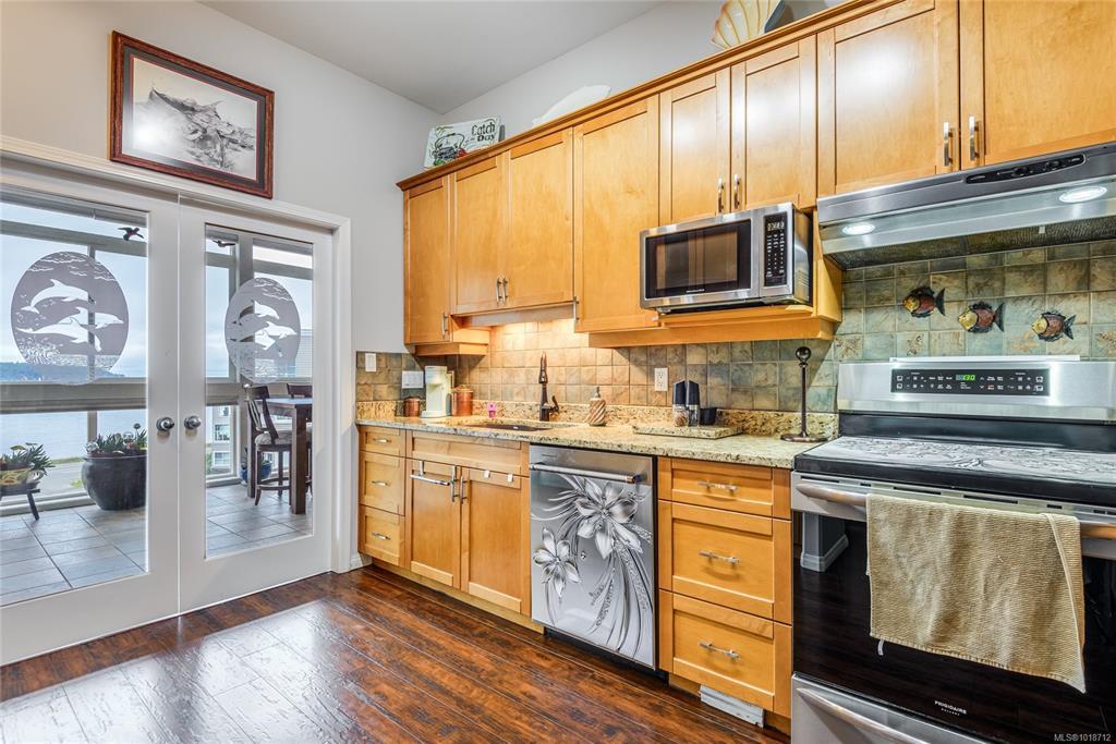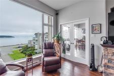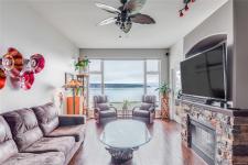 Discover elevated coastal living at Silver Sea in this elegantly appointed 2 bedroom + den / 3rd bedroom, 2 bath residence spanning 1,604 sq ft. Stunning views of the Strait of Georgia welcome you into a bright, open-concept layout enhanced by hardwood-style floors, custom electric blinds, and sophisticated etched glass accents. The gourmet Honey Oak kitchen features granite counters, premium appliances, and ample cabinetry. The serene primary suite offers a spa-inspired ensuite with a walk-in soaker tub with a discreet safety door. Comfort is ensured year-round with a mini-split heat pump and A/C, plus an electric fireplace for added ambiance. Residents enjoy a fitness gym, guest suite, pet-friendly living, and this rare offering includes three underground parking stalls and a storage unit. Steps from the Seawalk and close to beaches, dining and marina amenities—this is elevated coastal living at its finest.