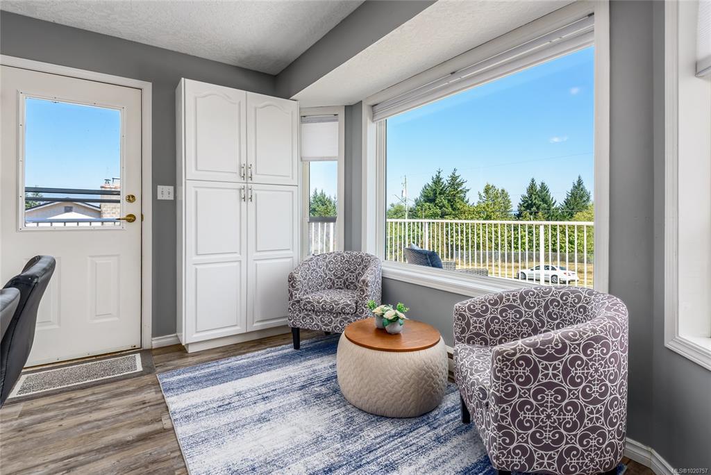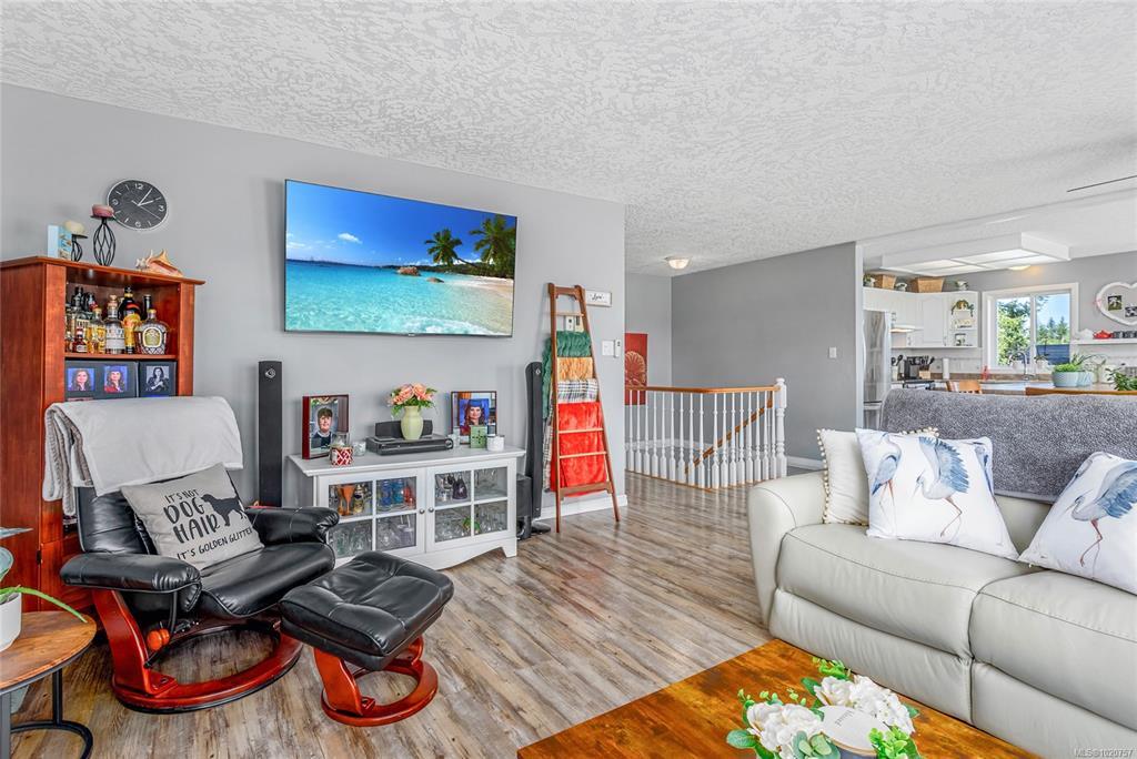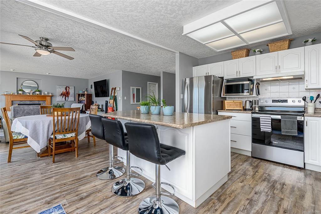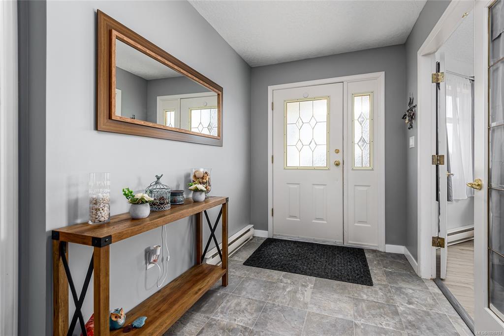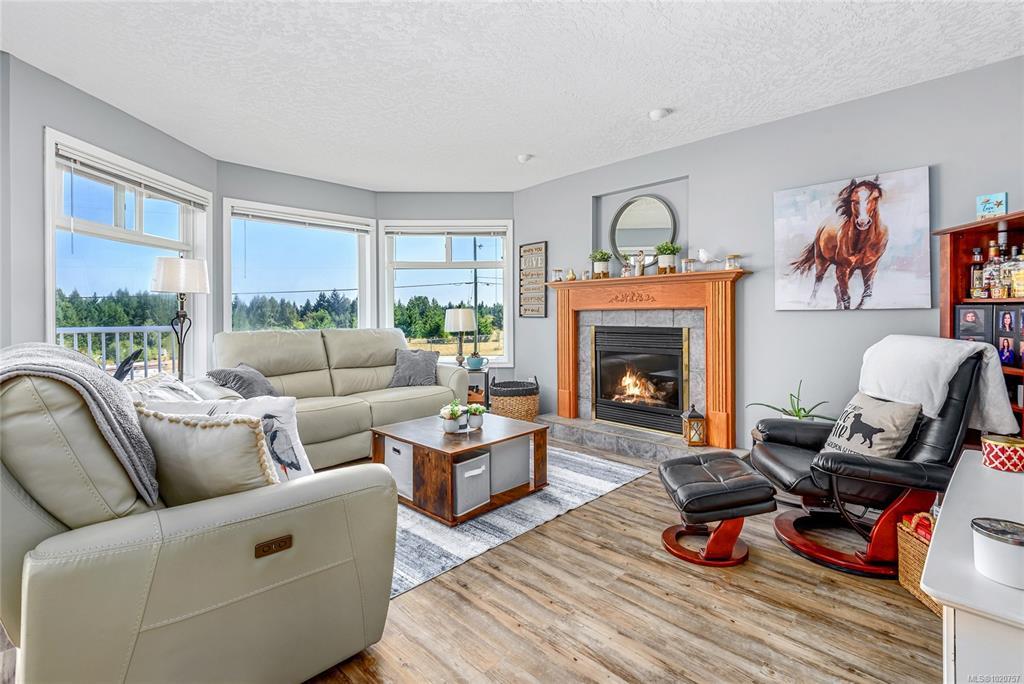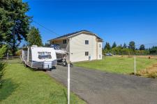 Situated on 0.44-acre corner lot north of Comox, 4-bedroom, 3-bath home offers easy access to Seal Bay Park’s trail system & nearby beaches, a 5-minute walk away. The property faces an open field & treed area, providing steady natural views from the living room, front windows, & deck. Upper floor includes the main living & dining areas, along with a gas fireplace in the living room. The kitchen has updated cabinets, new appliances, & practical layout, the roof was replaced in 2025 with fiberglass shingles. The lower level features non-conforming suite with its own entrance, driveway, den a second gas fireplace, & private laundry for independent use. Outdoor features include a fenced backyard, gazebo, fire pit area, workshop space under the deck, raised garden beds, and RV and boat parking. Zoned R-1, the property allows a secondary dwelling up to 90 m² and is about 10 minutes from Comox with nearby amenities. $5,000 decorating bonus to the Buyer to personalize the home to their taste.