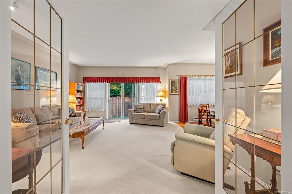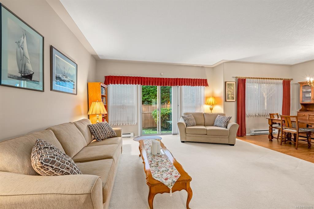 Come discover the convenience of the Walnut Grove patio home community In East Courtenay. Where you will be looked after like family and enjoy one level living. This is an end unit as its a 2 unit duplex within this welcoming complex. Very spacious 2 bedroom, 2 bath with ensuite with jetted tub. The formal living and dining has cozy gas fire place and air conditioning and access to the private back patio. This unit has lots of storage and parking with the driveway and a double car garage and 5 ft crawl space with lots of storage. The complex has had new roofs, skylights and gutters. The gas hot water tank is 2021. One pet allowed under 15 inches allowed, rentals allowed.