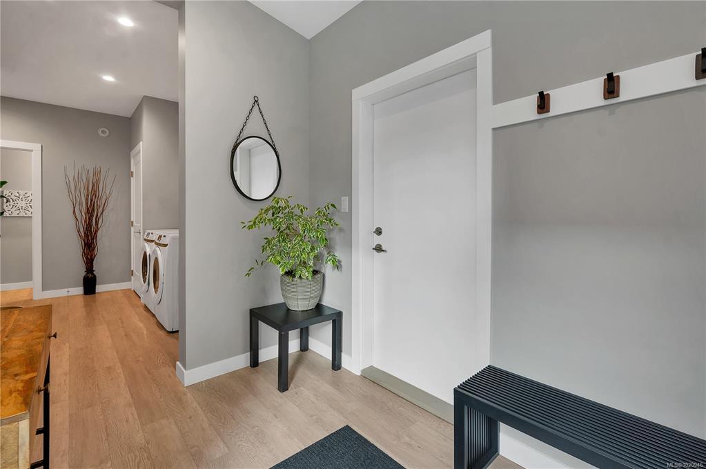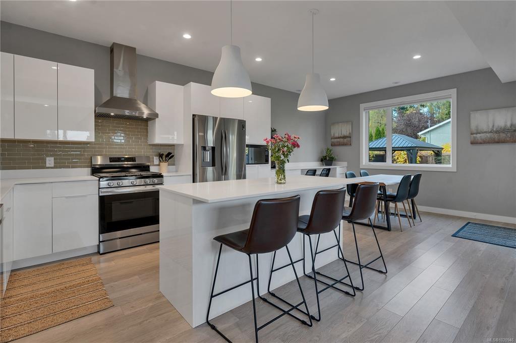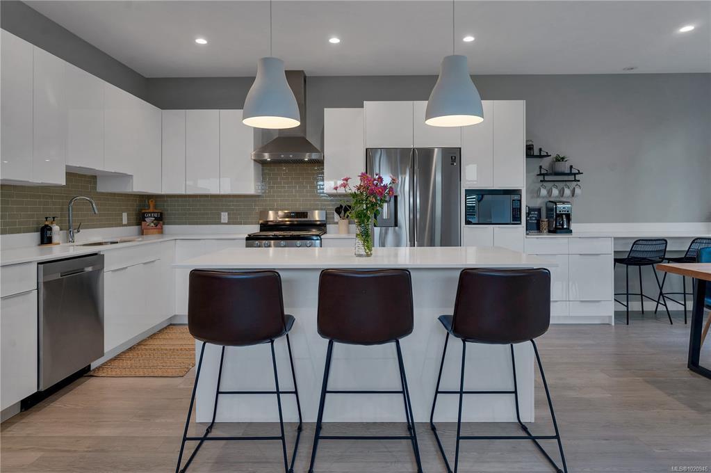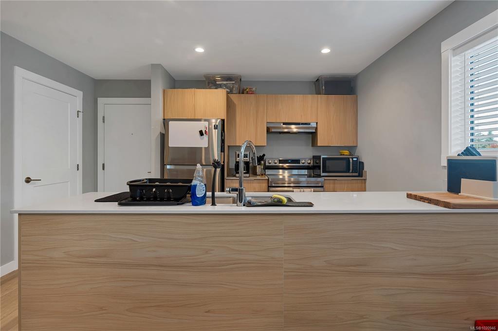 Modern living meets exceptional flexibility in this 2022-built home on a quiet private lane in Willow Point. The main residence offers 4 bedrooms and 2.5 baths with 9 foot ceilings on the main level, premium vinyl plank flooring, and quality modern bathroom finishes throughout. A bright open layout connects the kitchen, dining area, and living space to the backyard for easy everyday living. A fully separated 1-bedroom legal suite sits above the garage with its own entrance, outdoor area, and 2 dedicated parking stalls. With great natural light and privacy from the main home, the suite is ideal for long term tenants or extended family. The home features a metal roof, Hardie plank siding, a gas furnace with an electric heat pump, low maintenance landscaping, a 2-car garage, and remaining home warranty. Walking distance to the Sea Walk and Willow Creek trails, this is a rare chance to own a newer home with a high quality suite in a sought after area.