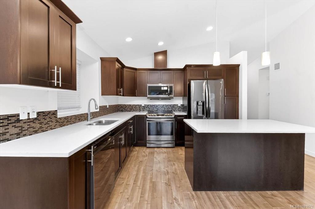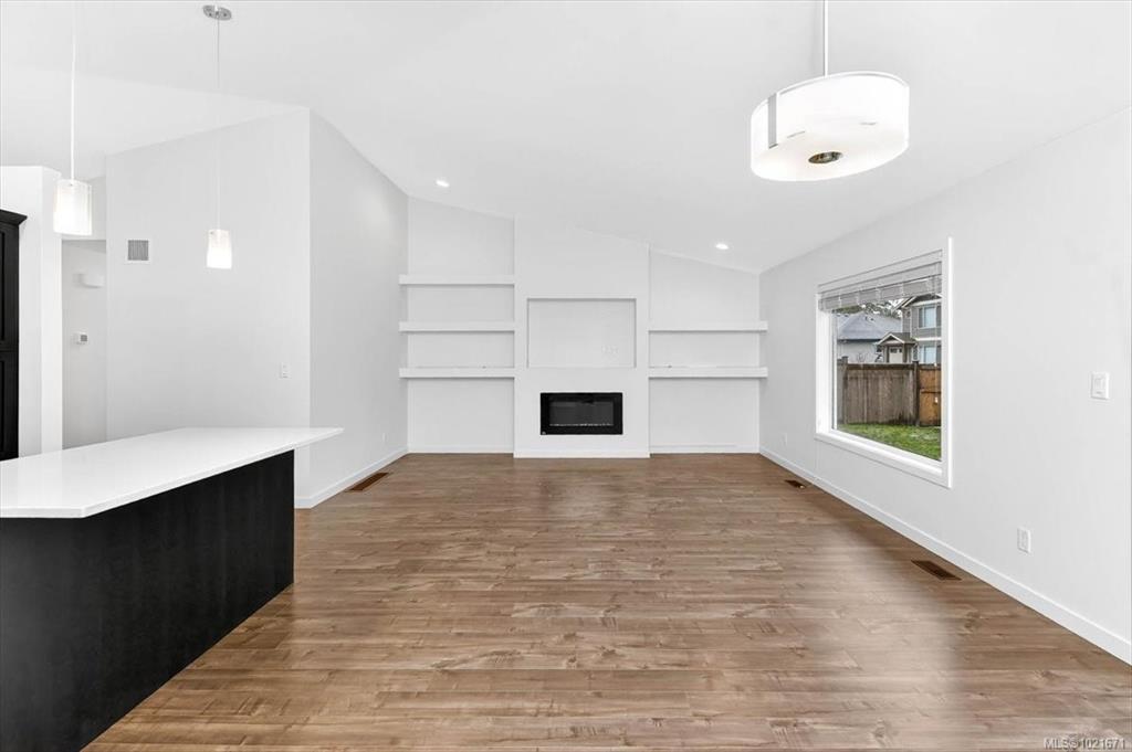 MODERN RANCHER ~ Step inside and discover an open floor plan with high ceilings. Kitchen showcases rich cabinetry, stone countertops & sleek black stainless steel appliances, making it a stunning focal point that seamlessly connects to the great room. Here, you'll find an accent wall with built-in shelving & an electric fireplace. This charming 3 bedroom home features a primary suite with ensuite & walk-in closet. Convenience is at your fingertips with a double garage & heat pump for efficient climate control. As you step outside, the fully fenced backyard presents a covered patio that is perfect for gatherings, providing both privacy & safety for children & pets. Situated on a corner lots, this property is just a short walk from the local school making it convenient for families with children. The scenic Kitsuksis walkway nearby offers a beautiful route for walks or bike rides, enhancing the outdoor lifestyle. Don't miss your chance to make it yours - quick possession available!