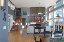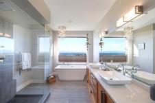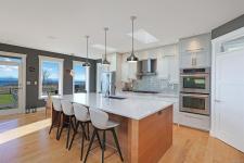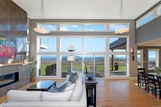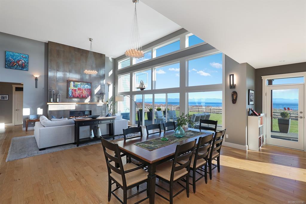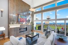 Stunning West Coast Ocean views across the Strait of Georgia to the snow-capped Coast Mountains beyond. Delivering panoramic views from all levels, this high-bank waterfront home of 3,415 sf, 4 BD/ 3 BA offers chic contemporary styling incorporating simple luxury and refined elegance. Streaming sunlight highlights the bright open plan w/ floor to ceiling windows & 15’5” ceilings in the Great Room, striking bronze tiled propane gas fireplace w/ fir timber mantle. Bright white kitchen w/ contrasting wood finished island, Wolf gas cooktop, Jennair dbl oven, pantry, & access to the covered patio w/ 4 skylights. Adjacent to the kitchen is a den/bedroom/formal dining room. The primary suite offers luxury, solitude, and 5 pce ensuite w/ soaker tub, glass & tile shower, dual sinks and views! Upstairs there are 2 bedrooms, den/small bedroom, & entertainment room w/ wet bar, ideal for media, pool table, & access to the deck. Doggie shower, 6’ crawl, Longboard aluminum siding ‘Built to last.’