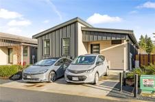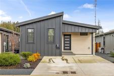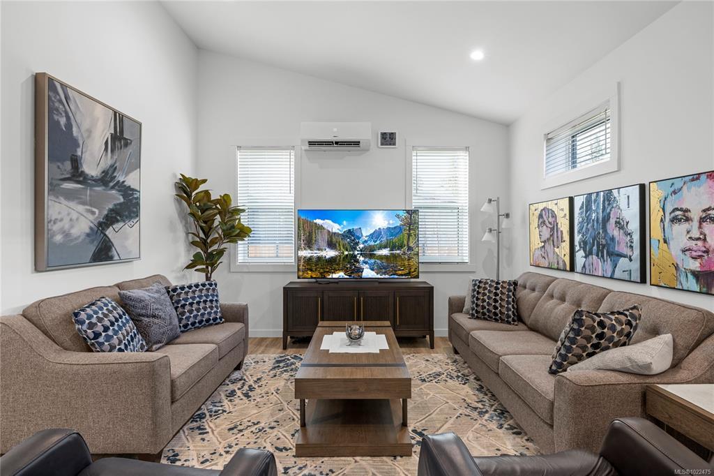 Beautiful manufactured home in The Flats in Cumberland with no GST. Built on site by Orca, this one owner energy efficient Northern Flicker model offers over 1,200 sq ft of bright, well designed living space with vaulted ceilings on a crawl space. The flexible layout features a spacious primary suite, a large second bedroom, two bathrooms, and an open kitchen, living, and dining area that is ideal for both everyday life and entertaining, plus a separate laundry/storage room for added function. Stay comfortable year round with two heat pump heads and hot water on demand. Outside, enjoy a private backyard, storage shed, EV charger already installed, and a driveway with parking for two vehicles. A great chance to settle into the Comox Valley lifestyle and enjoy everything Vancouver Island is known for.