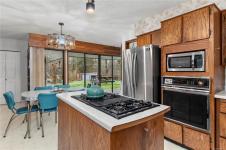 Inside this classic rancher, you’ll be greeted by an inviting and practical kitchen, a cozy living room equipped with a certified wood stove, and three large bedrooms, including the primary with a walk-in closet and ensuite. Additional features include wall-to-wall sliding glass doors for seamless indoor/outdoor living during our nicest months, plus a gas fireplace dedicated to keeping the garage warm during the colder seasons.