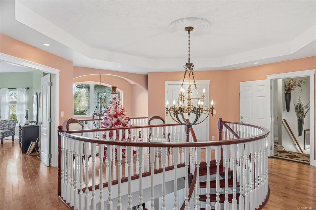 Welcome to one of Comox’s most sought-after streets, where homes rarely come to market and residents stay for decades. Set on a beautifully private 1.24-acre lot, this exceptional estate home offers a remarkable lifestyle in a peaceful, tree-lined pocket of the Valley. Grand principal rooms, soaring ceilings, and impeccable care throughout create an inviting, timeless feel. The layout is ideal for families of all sizes, with four spacious bedrooms in the main home and a fully self-contained two-bedroom legal suite with its own entrance, garage access, and great independence. Perfect for extended family, guests, or income support, the suite blends seamlessly with the property’s overall design. Outside, mature landscaping frames sunlit lawn areas and quiet outdoor spaces that feel miles away from town, yet you're only minutes to Comox amenities, schools, and recreation. A rare opportunity to secure a truly special home on a cherished street.
