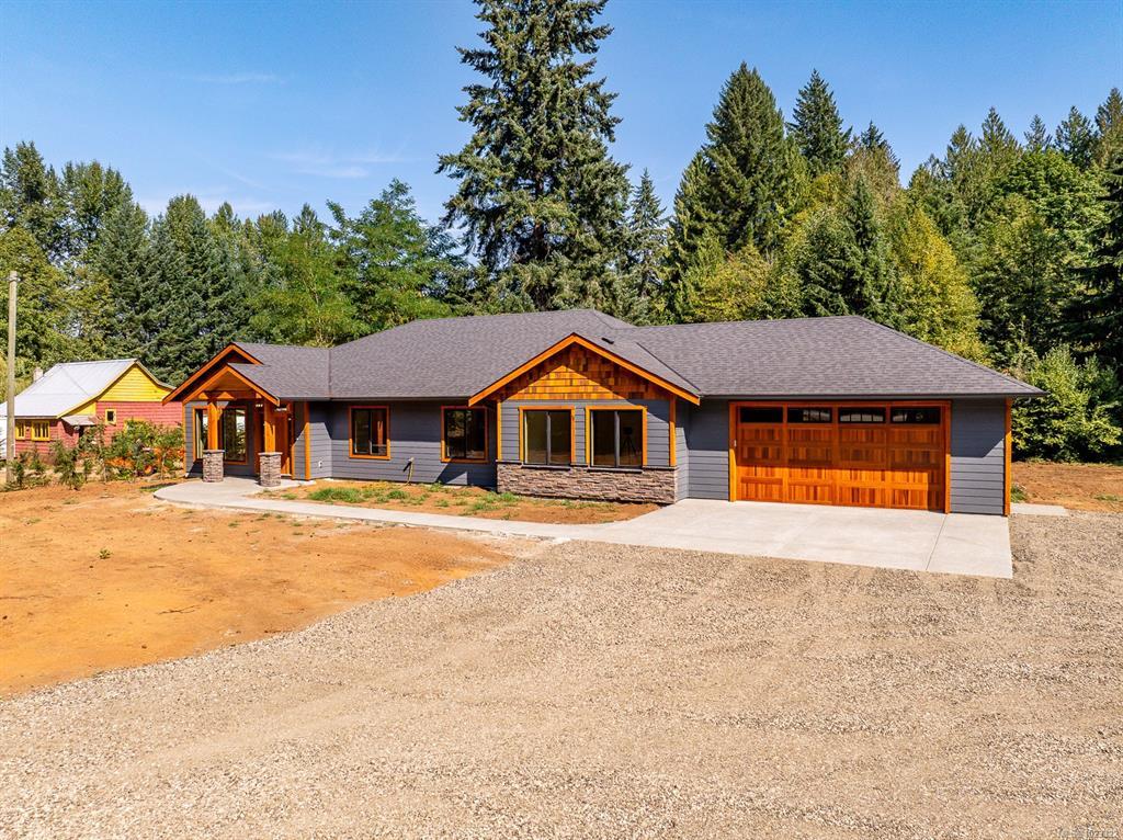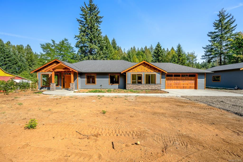 3 bedroom, 2 bath, 2310 sq ft executive rancher by Dragonfly Homes, ready for occupancy. Set on a level 2 +/- acre, private treed lot with a 1000 sq ft detached shop with over height garage doors. This high end rancher has all the west coast finishing Dragonfly homes is known for with a modern twist. Hardwood and tile floors, fir trim, hemlock doors and a huge great room with vaulted ceilings that extend through to the huge partially covered patio. Living room boasts floor to ceiling windows and a cozy fireplace. Gourmet kitchen with modern finishing, lots of cabinetry and quartz counters. Luxurious master suite has a walk in closet and ensuite with free standing soaker tub, jack and jill sinks and walk in tiled shower. Electric forced air furnace with a heat pump keeps you cool in the summer. This one level home has a covered entry way with fir timber details, hardi plank siding a garage attached to the house as well as the detached shop so bring your toys!