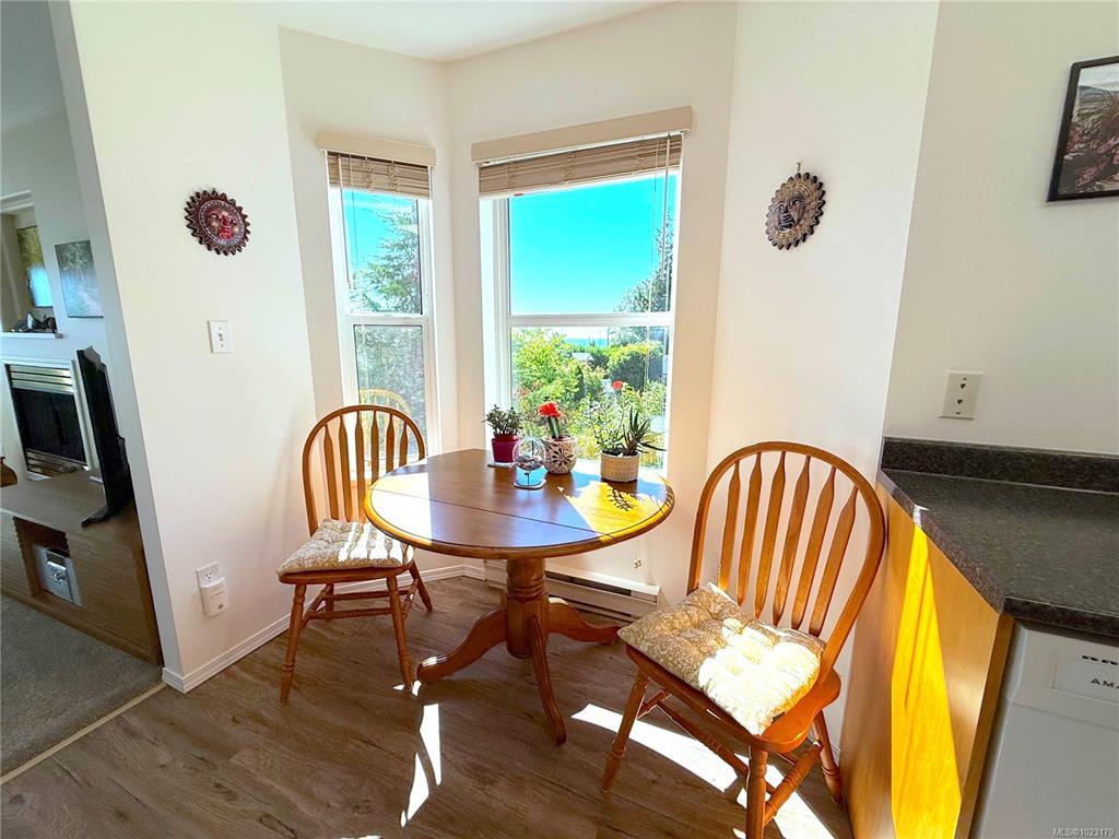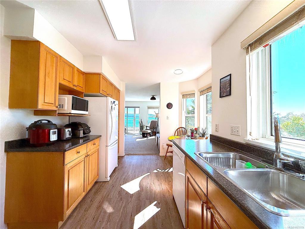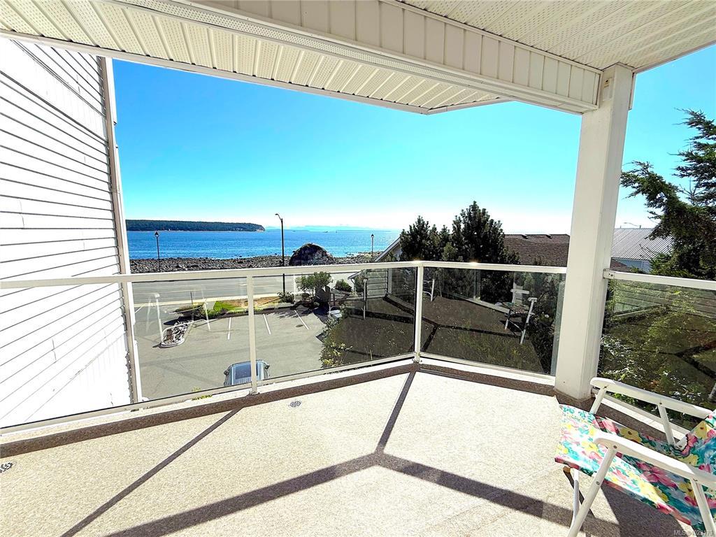 Coastal living at its finest! Enjoy each day with beautiful unobstructed ocean views. This bright and private corner unit features an open layout in the kitchen, dining and living areas, creating an inviting space that’s ideal for entertaining and every day living. You will love the cozy gas fireplace, while large windows flood the home with natural light. The primary bedroom offers a tranquil retreat with a garden view, and the second bedroom is ideal for guests or a home office. Additional comforts include in-suite laundry, secure underground parking, and additional storage. Step outside and you’re just across from Campbell River’s famous Seawalk — perfect for your morning or evening stroll. With shops, cafés, and parks nearby, you’ll love the convenience of sought-after Willow Point. Fresh flooring, updated light fixtures, and modern paint make this condo truly move-in ready. This well-maintained building features a guest suite that guests can rent at $30/ night and has a new roof.