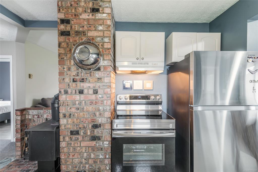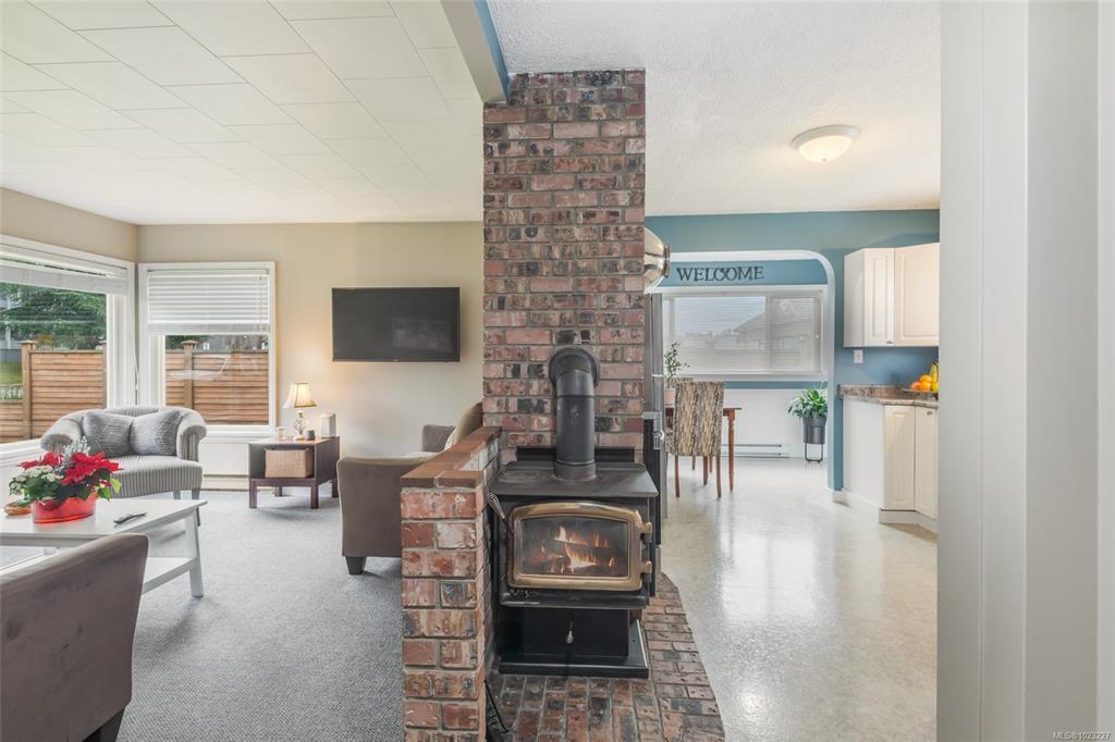 This centrally located rancher offers the simplicity of condo-style living without the strata fees. Set on a manageable, fully fenced lot, it supports a low-maintenance lifestyle with thoughtful details inside and out, keeping day-to-day upkeep light while still giving you the privacy of your own yard. Inside, a bright living room flows into the kitchen, with a wood stove subtly defining the spaces and adding warmth on cooler days. To one side, two comfortable bedrooms and a full bathroom create quiet places to recharge; to the other, an inviting eating area connects to the laundry room and backyard. Outdoors, enjoy two concrete patios, a gazebo, firepit, attached deck, and fully fenced yards front and back. A detached 335 sq ft garage and laneway parking provide space for vehicles, storage, or hobbies. HardiePlank siding, vinyl windows, a 2015 roof, and a practical single-level layout offer comfort and efficiency, all moments from shops, services, trails, and recreation.