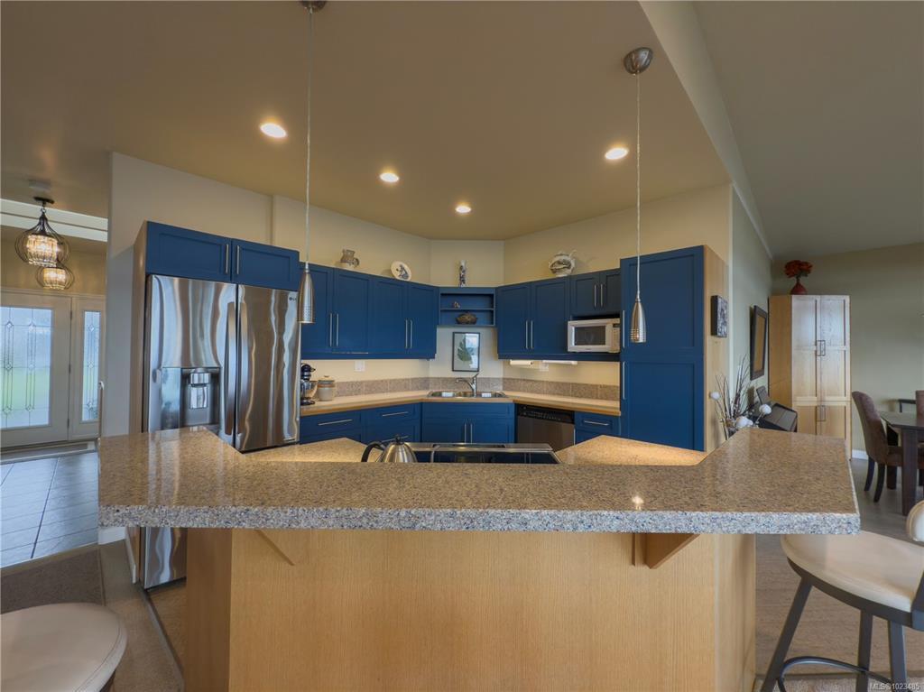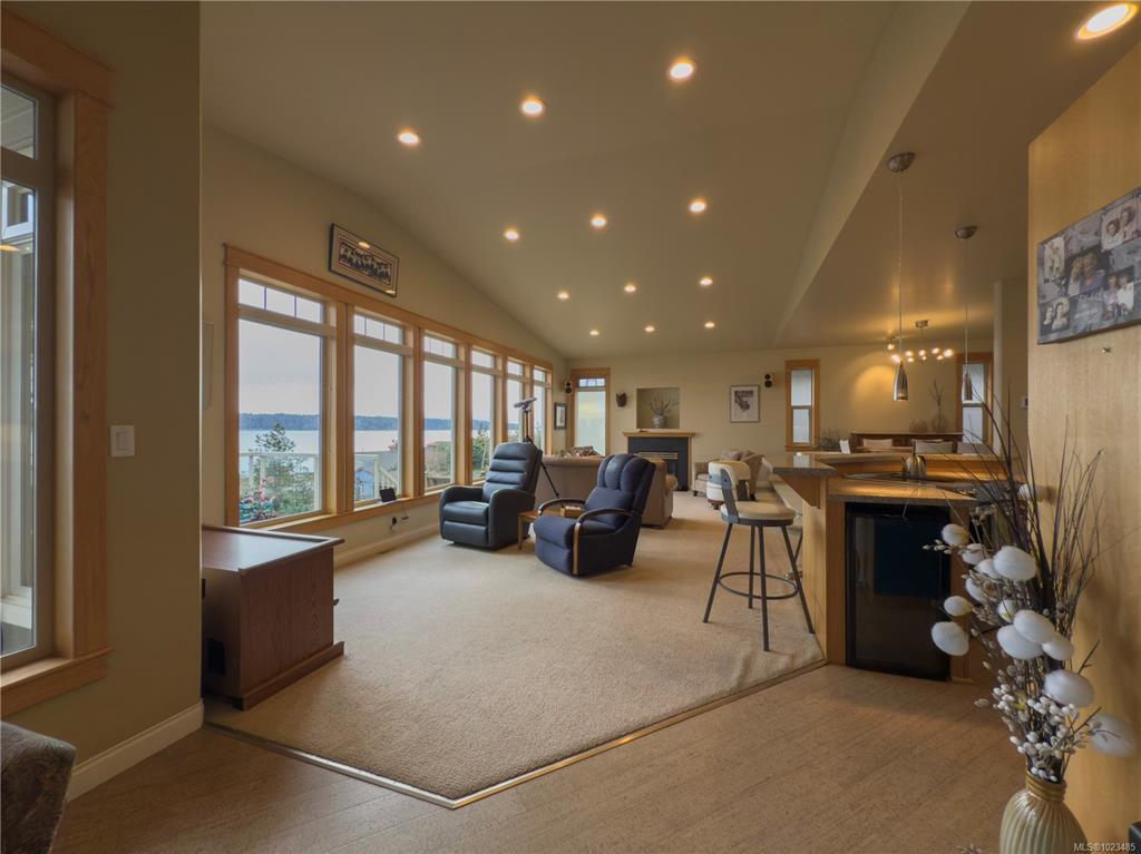 A truly unique setting overlooking the iconic Discovery Pier. This custom-built main-level entry home with a full walk-out basement offers front row views of the ever changing Inside Passage, close ocean waters, and the coastal mountain range beyond. The main level is designed for comfortable everyday living and entertaining, featuring a spacious primary bedroom with ensuite, a well-appointed kitchen with dining nook, a formal dining room, and a bright living room positioned to capture the stunning views. An oversized garage provides excellent storage and functionality. The lower level is ideal for guests or extended family, with a generous bathroom, a family room, a wet bar, and a flexible hobby or recreation area. Lovingly maintained by its original owners, this home is now ready for its next chapter. Please note there is no access from the Island Hwy; access is exclusively via a back lane, offering a quieter and more private setting.