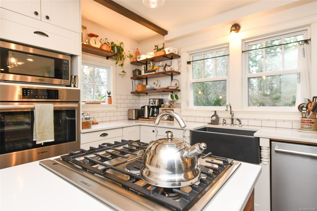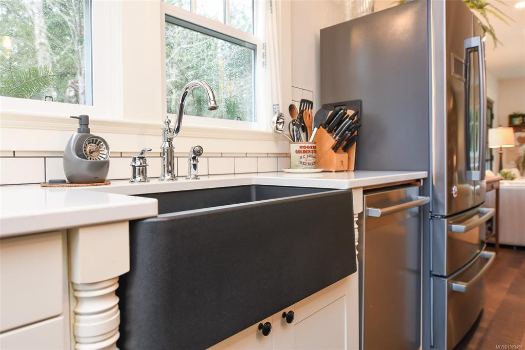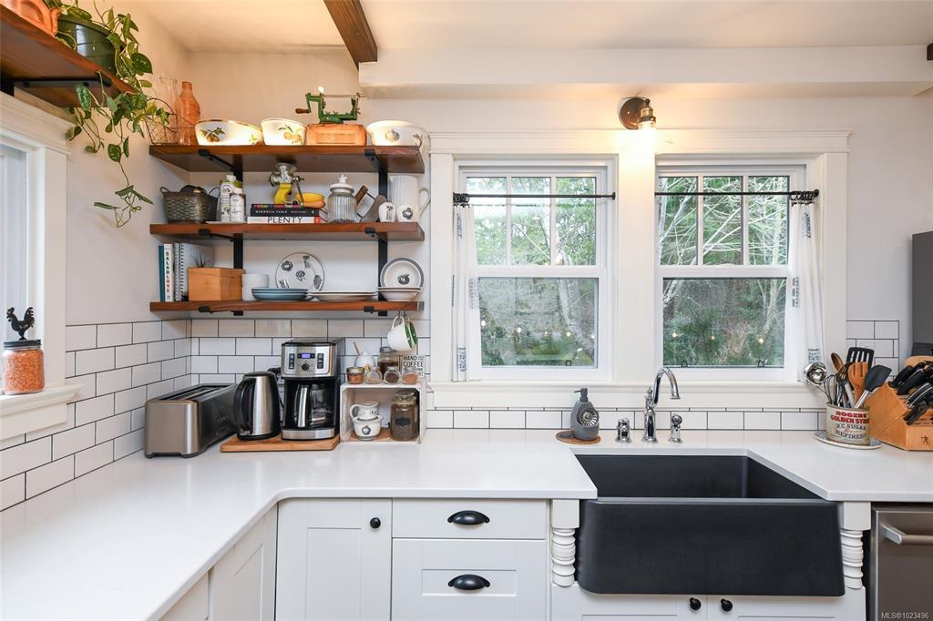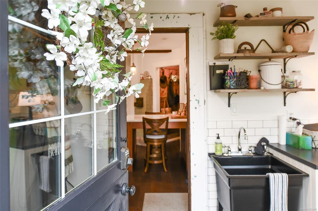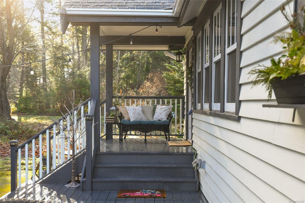 Rare opportunity to own a 4-acre property that includes a charming, renovated farmhouse plus detached garage/studio space, in the desirable Comox Peninsula. The main level features character-filled living spaces. The kitchen offers a custom island with cooktop, apron sink, quartz countertops, stainless appliances & a walk-in pantry. Upstairs, you'll find the primary loft bedroom retreat complete with a soaker tub & retractable wardrobe. Extensive upgrades include spray-foam insulation, geothermal heat pump, new windows & 2 separate 200-amp electrical services (home & shop).