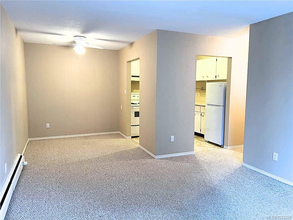 Ideal for first-time buyers, investors, or those looking to downsize, this well-cared-for 2-bedroom, 1-bath condo in Cedarbrook represents outstanding value in a highly convenient location. Positioned on the third floor, the unit offers partial ocean views, an open living and dining space with access to a private balcony, a functional kitchen equipped with a newer refrigerator, and generous in-suite storage. Cedarbrook is a professionally managed complex featuring well-maintained grounds, an inviting lobby and resident lounge, elevator service, and shared laundry facilities. Located within walking distance of the hospital, shopping, recreation, and public transit, this condo provides affordable, low-maintenance living in the heart of Campbell River.