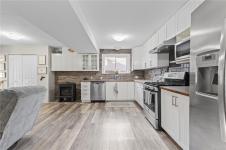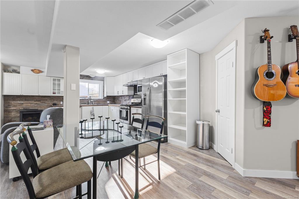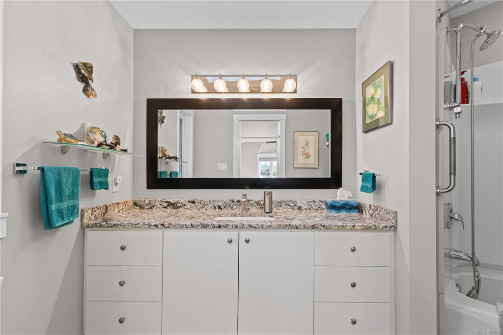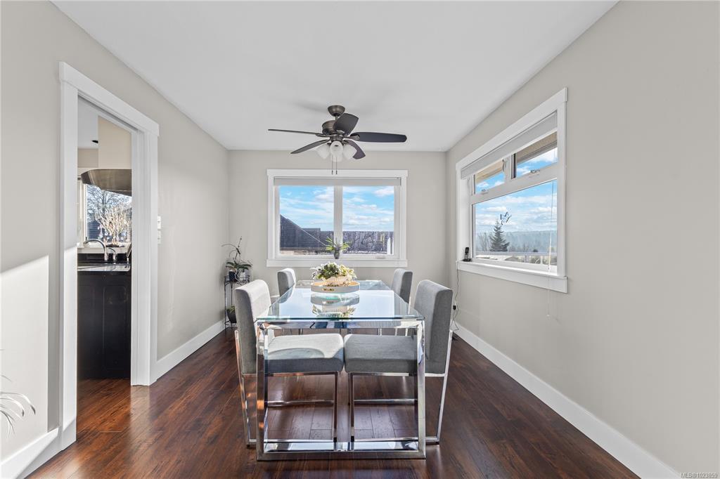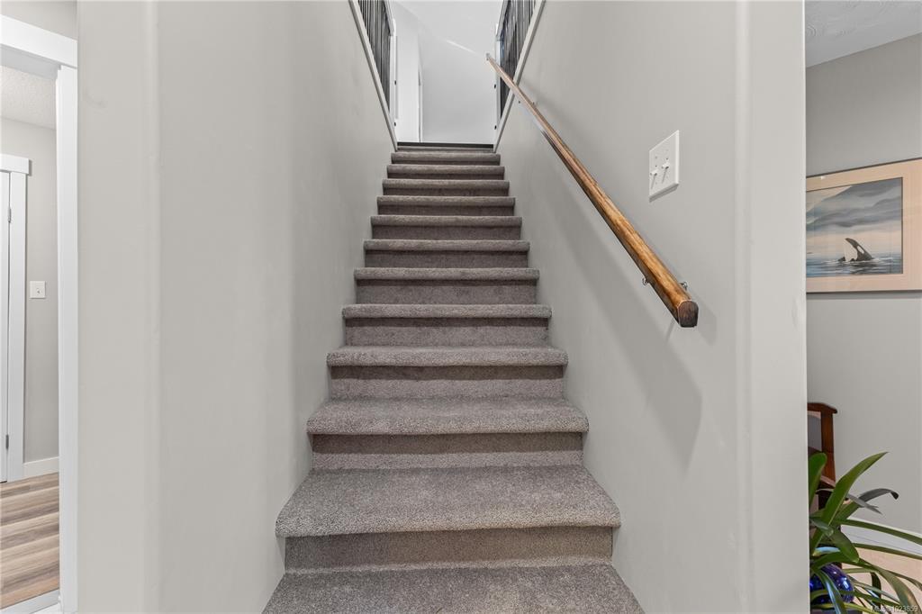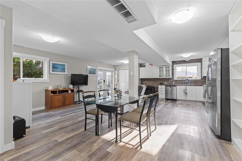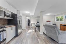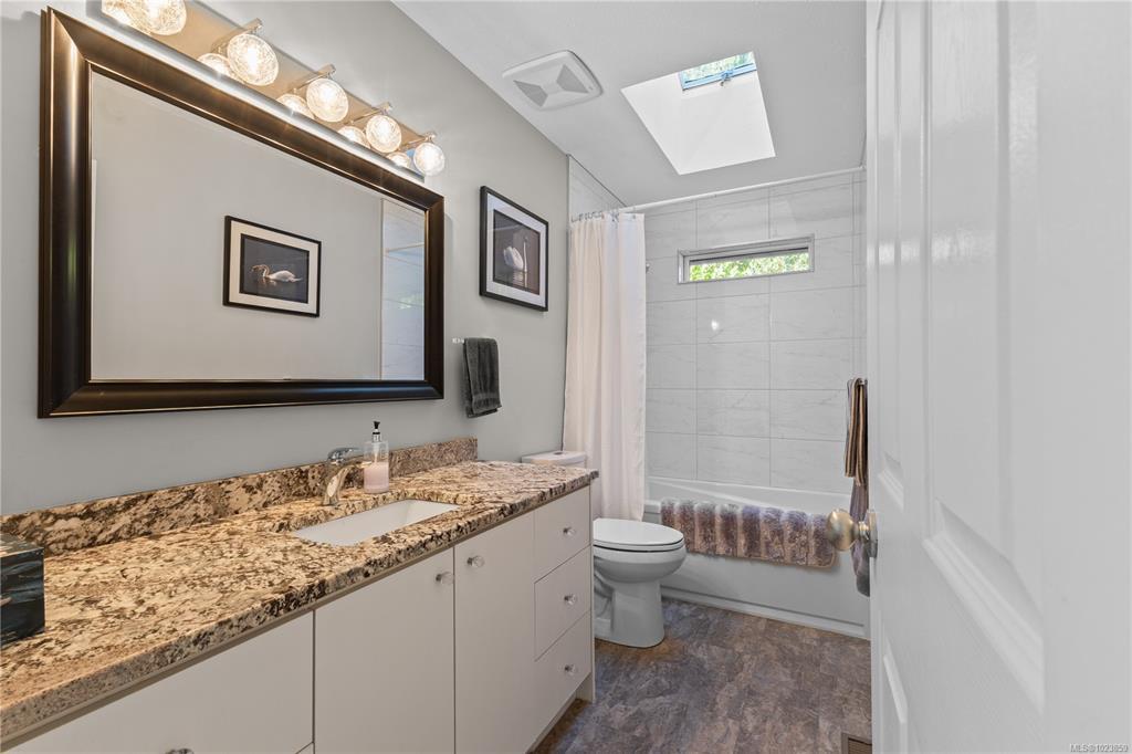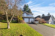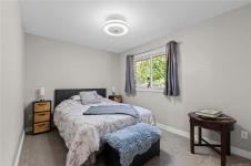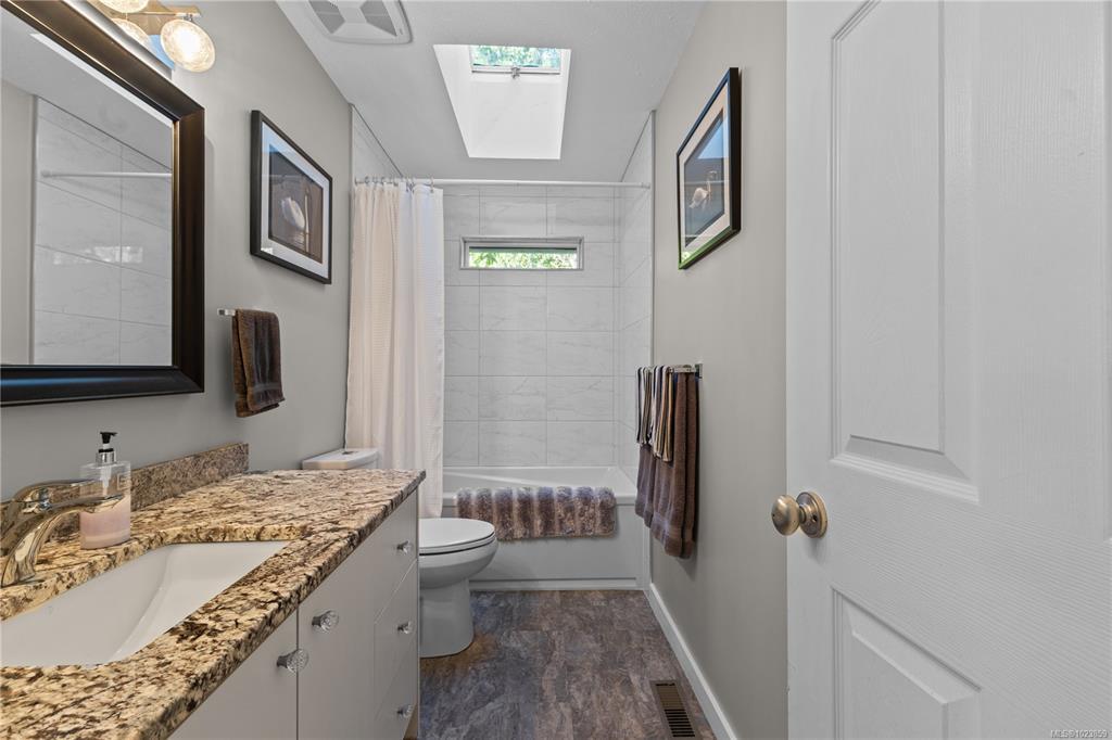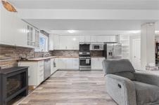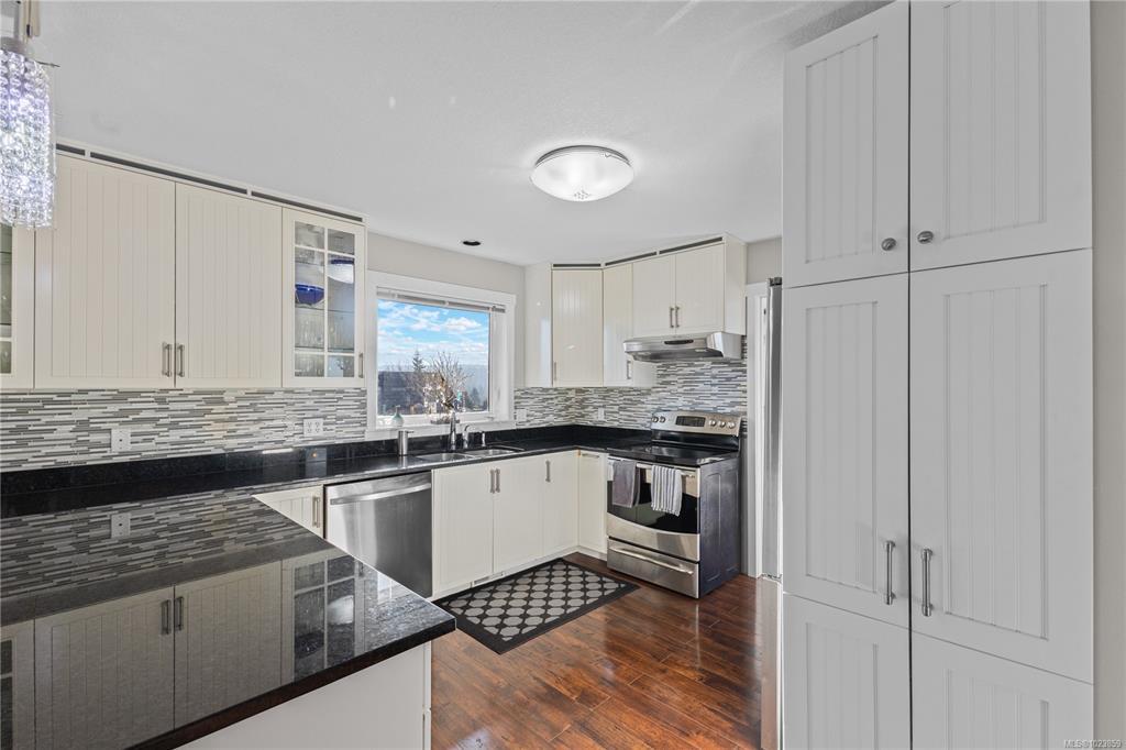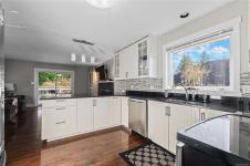 Beautifully updated and move-in-ready, this well-cared-for home is in a great neighbourhood with stunning mountain views. A thoughtful layout and upgrades offer comfort, efficiency, and peace of mind. The main level features three bedrooms, including a 4-piece ensuite, and a bright living space with granite countertops, updated trim, and bronze glass windows. Major updates include windows (2015), doors (2016), plus insulation upgrades such as R-57 island insulation and solar window coverings. The lower level includes a light-filled den near the entry ideal for many options, separate from the self-contained one-bedroom suite, offering flexibility for family living or rental income. Enjoy year-round comfort with natural gas forced-air heating, central air conditioning, and a hot water tank replaced in 2020. The durable metal roof includes a transferable 50-year warranty. The garage features natural gas heating and a BBQ hookup, with a fully fenced, low-maintenance yard and mountain views