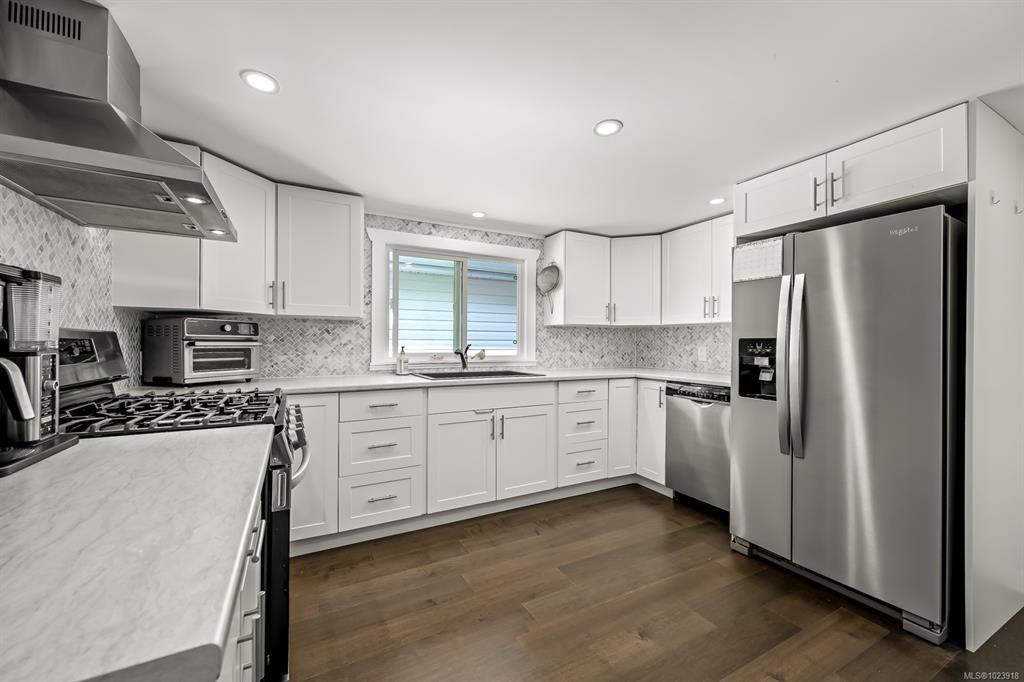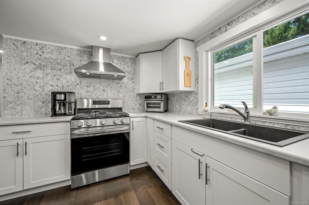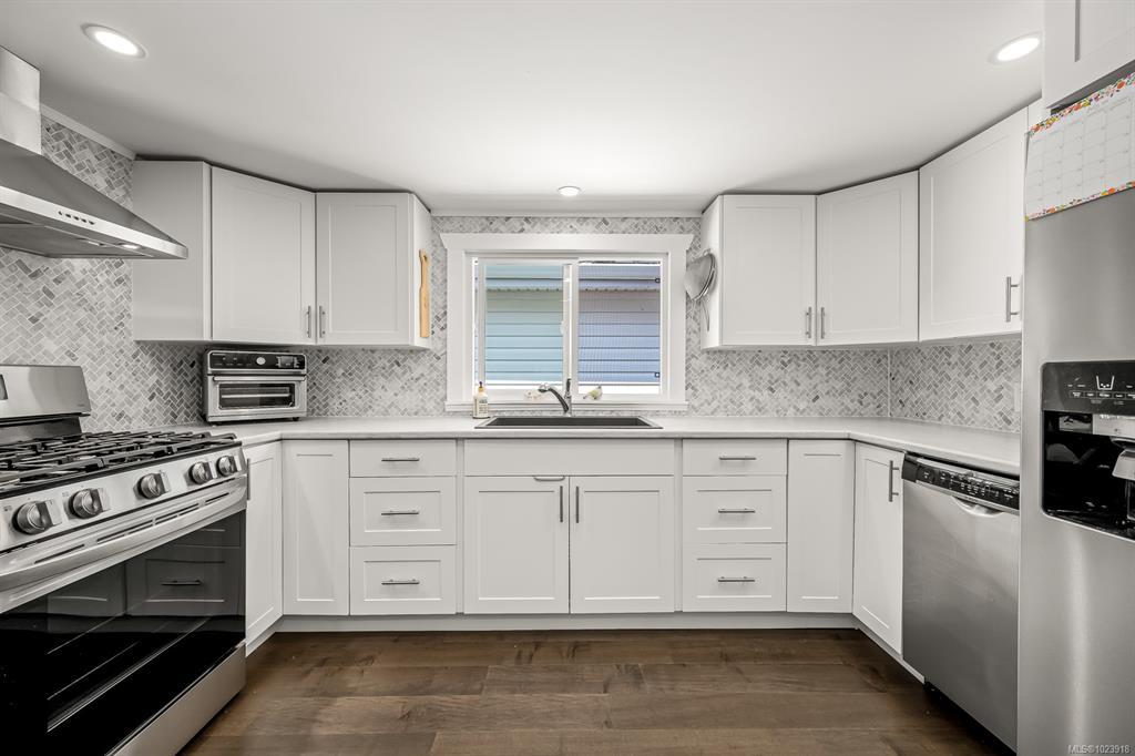 PROFESSIONALLY UPDATED TURN-KEY HOME! This beautiful home is perfect for first-time buyers, retirees, or those looking to downsize. You will love the natural light, vaulted ceilings in the living room, & bright, new kitchen with stainless appliances (natural gas stove), herringbone tiled backsplash, hardwood flooring, & hot water on demand. Other updates: a new metal roof, siding, windows, drywall, paint, flooring, trim, furnace, and gutters. Outside, you'll find a new concrete driveway, carport, cozy covered front deck, side yard with space for gardening, a private deck in the backyard, a shed for your tools & storage, and more dry storage under the house. Enjoy proximity to all major amenities such as the Aquatic Center, North Island College, Costco, Home Depot, Thrifty's complex, golfing, beaches, & the hospital. Situated in an awesome, family-oriented neighbourhood with no rentals allowed, smaller pets on approval, and a well-managed community. This one is a must-see!!