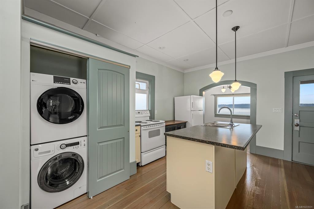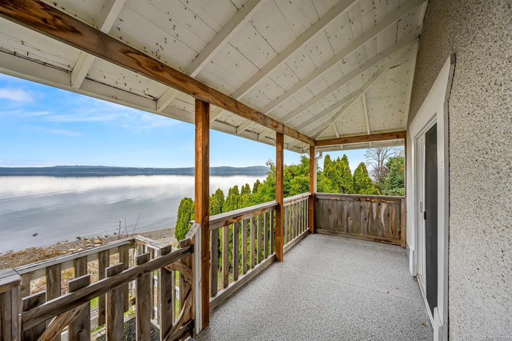 Welcome to your serene waterfront retreat in Union Bay, just a 12-minute drive to Courtenay! This charming 929 sq. ft. home, built in 1930, offers 2 bedrooms, 1 bathroom, and timeless first-growth fir hardwood floors. Enjoy breathtaking 180-degree views of the Georgia Strait, Denman Island, and the mainland mountain ranges from the fabulous 18 x 6 ft deck. Situated on a walk-on waterfront property, this home is ideal for those seeking tranquility. Additional features include a cozy wood stove, a 1-car garage, a wood shed, and an unfinished basement with 11-ft ceilings for abundant storage. The mature setting and serene ambiance make it a true gem. This property sits on TWO legal lots, providing exceptional redevelopment potential for the future. Don't miss the chance to own a piece of Union Bay's stunning waterfront with endless possibilities