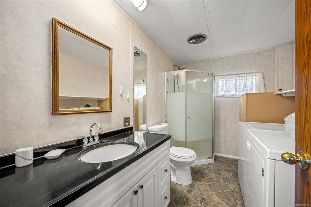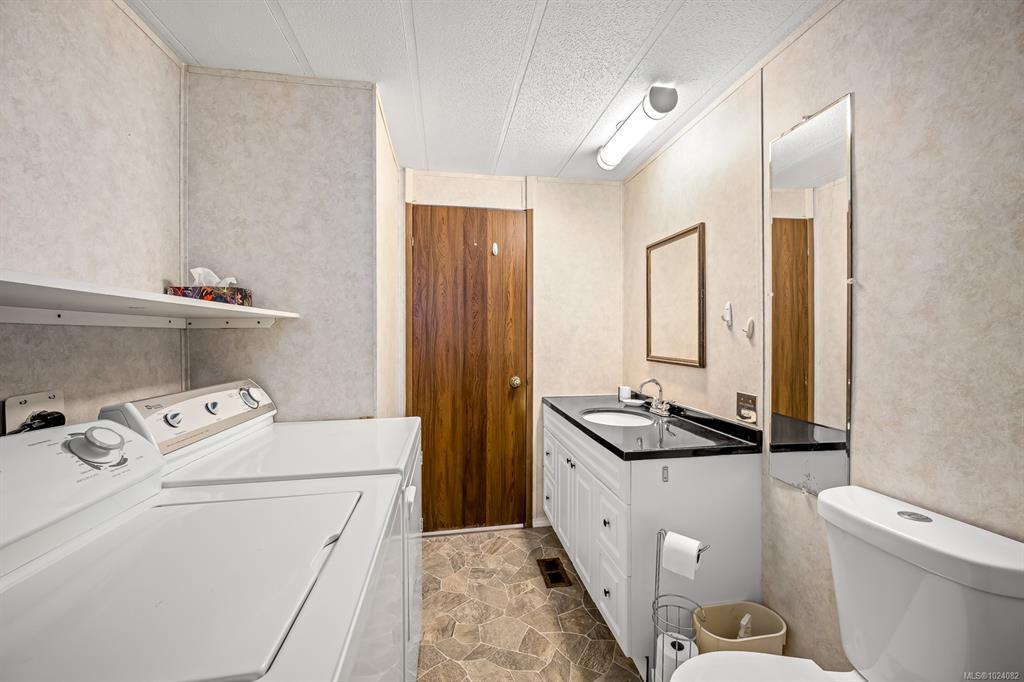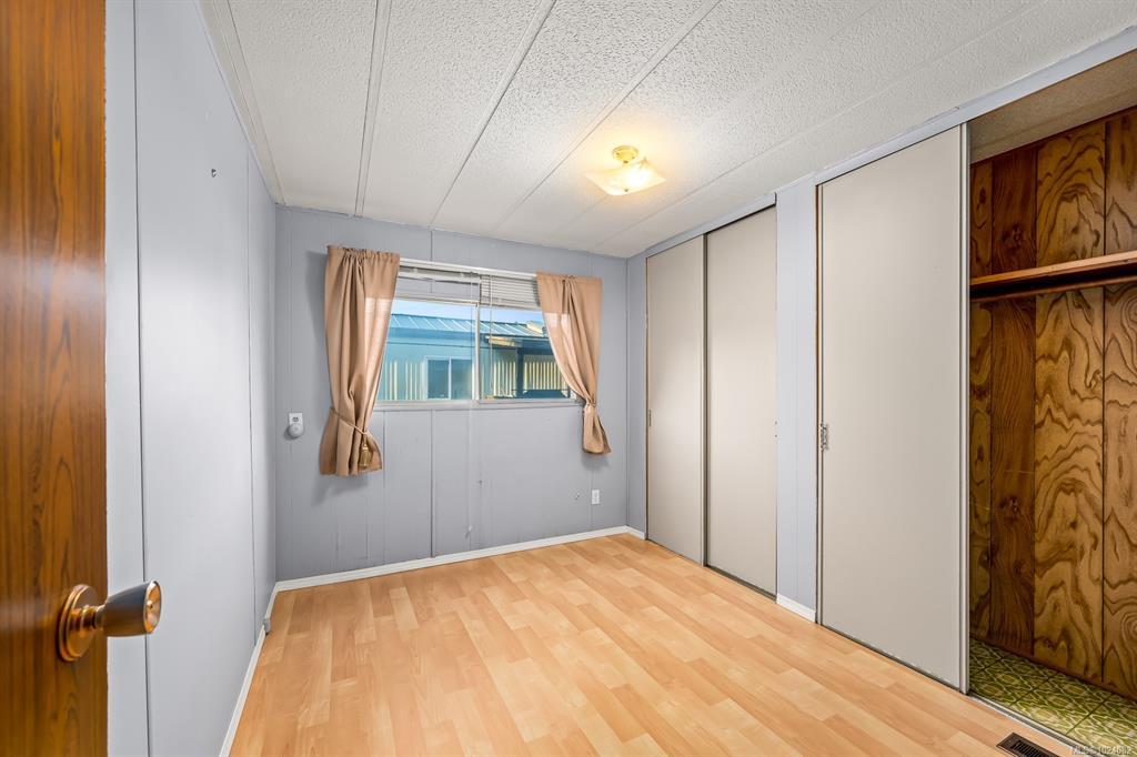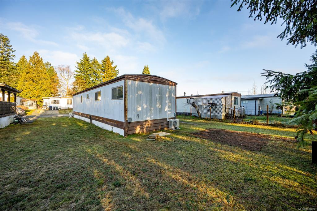 This one owner, well loved home boasts a brand new hot water tank and mini split heat pump providing a comfortable climate year round. Uplands mobile home park is a well managed, centrally located park with easy access to North Island College, Costco, Home Depot, multiple fitness facilities, golf, dining out and much more. Leave the car at home and take a quick walk to pick up your groceries! This home will benefit from some updating, but is move in ready. This home has a nice, sunny yard ready for you to make your own.
