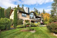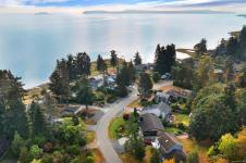 Located in the desirable Craigdarroch Beach, this well maintained home sits on a 0.2 acre lot with lovely ocean views toward the Coastal Mountains. Offering over 2300 sq ft of easy living, the home features four bedrooms, including a primary and second bedroom upstairs, both with their own ensuites. The bright living room showcases vaulted ceilings, a gas fireplace, and floor to ceiling windows capturing the ocean views. The spacious kitchen includes a pantry, modern lighting, breakfast island, and travertine backsplash, and opens to the dining area with French doors leading to a large covered deck for year round enjoyment. The lower level offers a family room, two additional bedrooms, laundry, and bathroom. A double car garage provides excellent space. Enjoy a private, landscaped, fully fenced backyard with powered storage shed, RV parking, newer septic, A/C Heat pump & updated windows. Public beach access across the street. Short drive to amenities. Coastal living awaits!