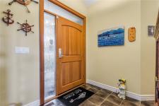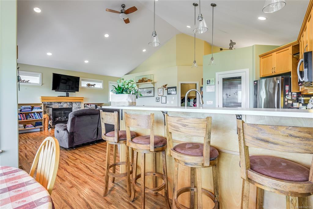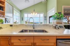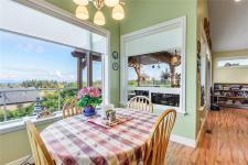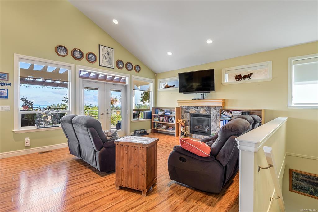 Large family home with Ocean and Mountain views with a 1 bedroom suite! This main level entry home lives like a rancher with 3 bedrooms and 2 full bathrooms on the main floor. The great room concept is bright, with lots of natural light and expansive high vaulted ceilings.. The kitchen has been updated with matte white quartz counters and is perfect for a tall chef. The living room has a nice and cozy gas fireplace, perfect for those winter nights. French doors out to a beautiful covered deck that has gorgeous wooden pergola and looks out to views of the ocean and beyond. The primary bedroom, captures a nice view as well, and has a walk in closet with a 4pc ensuite with separate soaker tub and shower. The downstairs suite is self contained with its own laundry, and full kitchen. The living area is huge, with access to a covered patio and back yard. There is also a large unfinished storage and mechanical room the entire width of the home. This is a must see, Don't wait!