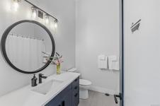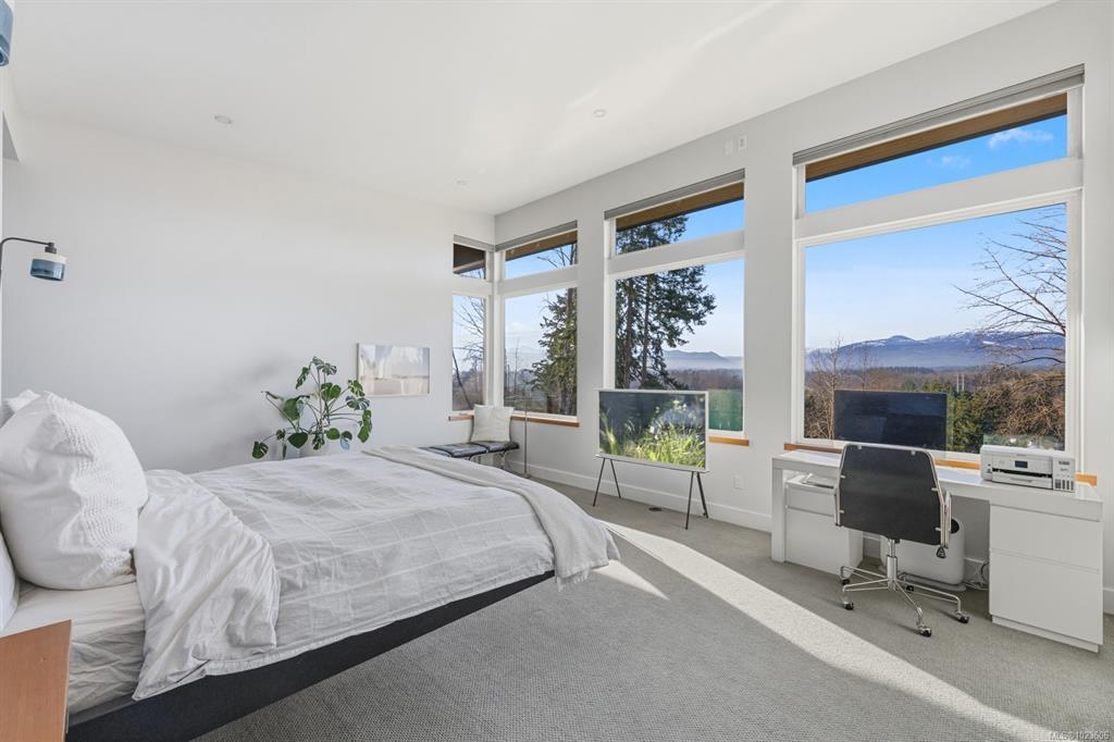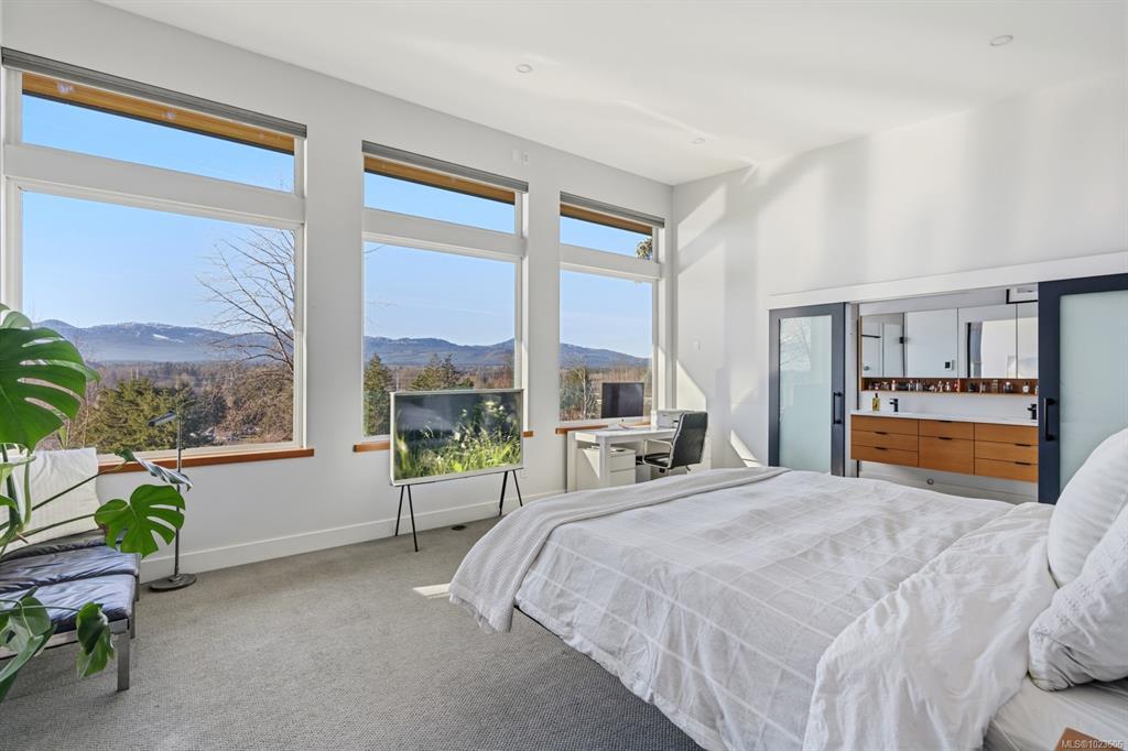 The spacious primary suite offers incredible views, a beautiful ensuite, large walk-in closet, and a floating bed.