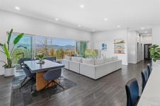 Seamless indoor-outdoor living defines the main living space, where stacking sliding glass doors open wide—perfect for entertaining or relaxing while taking in the scenery.