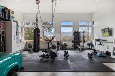 A massive garage with wood stove and overhead lift provides exceptional versatility for projects, storage, or hobbies. The matching 8-10 person sauna adds an element of wellness for family and guests.