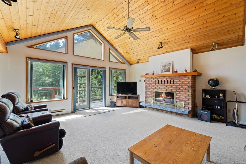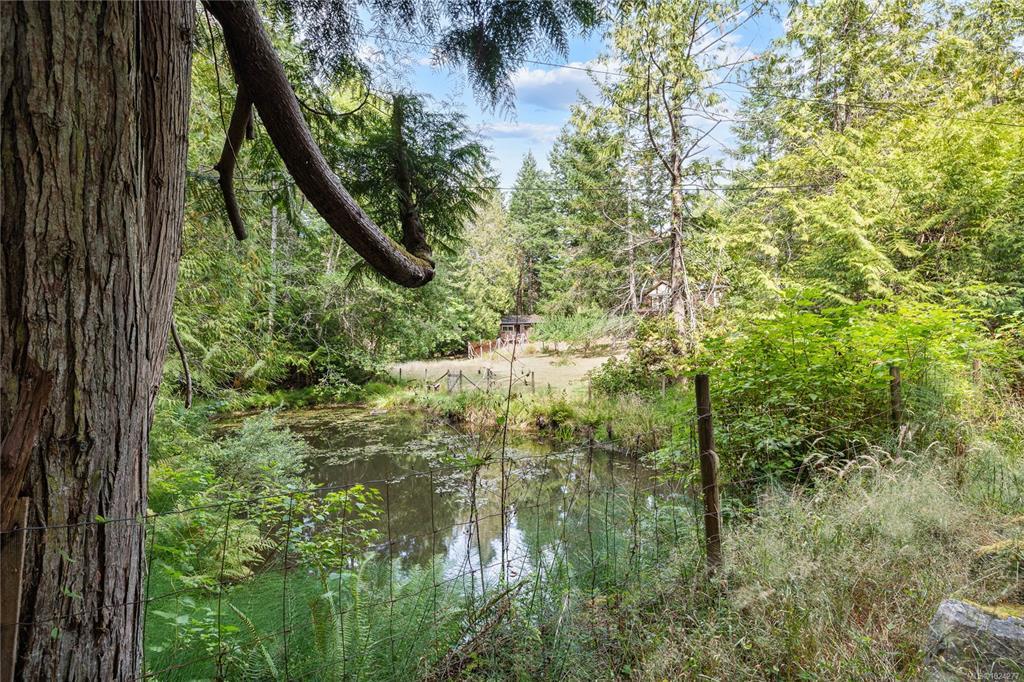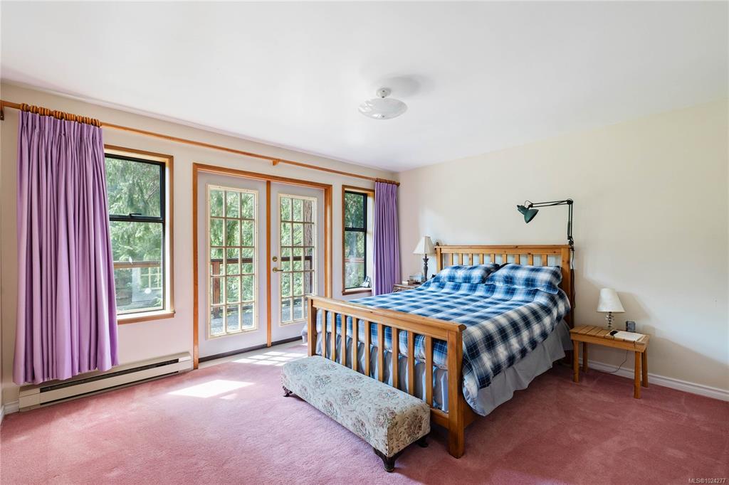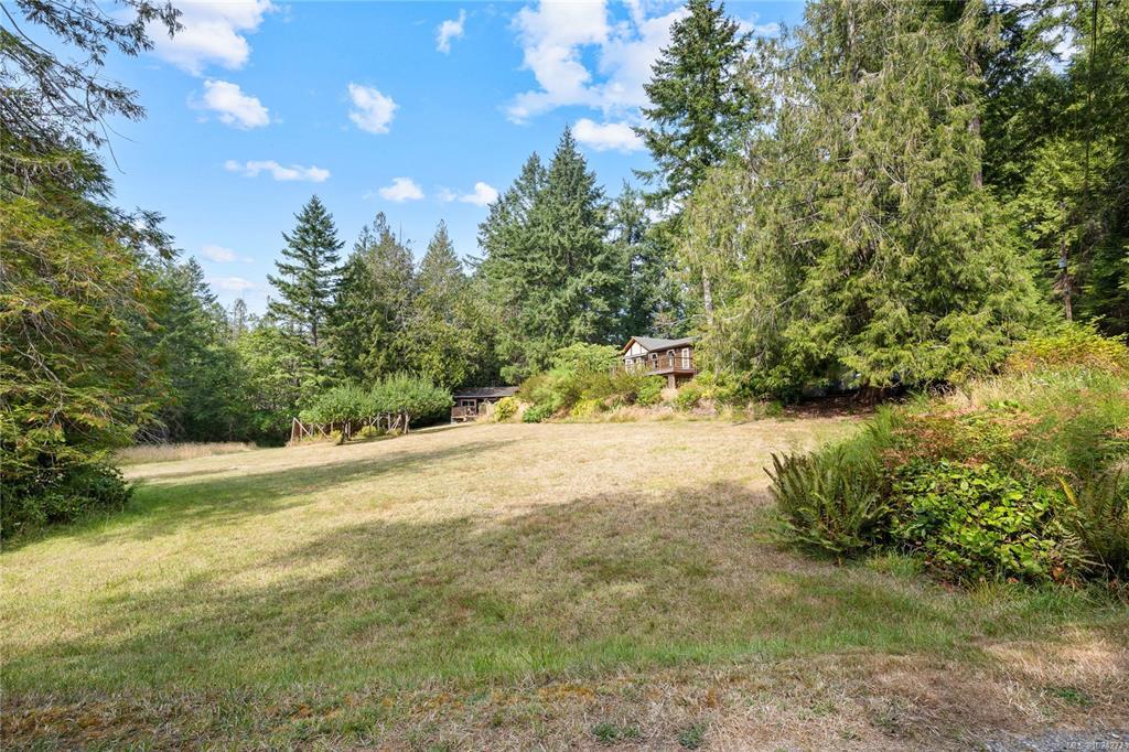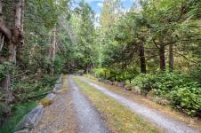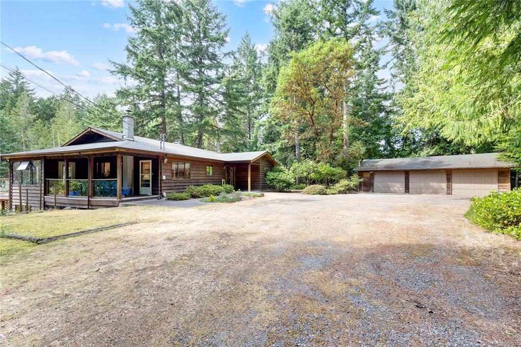Your own secluded island sanctuary offered for the first time on the market. This outstanding estate is nestled on nearly 10 acres of sun-drenched, private land, with nearby shoreline access via the scenic Jack Foster Trail bordering the property. The well maintained, thoughtfully designed home harmonizes beautifully with its natural surroundings, offering efficient main-level living and stunning views over a large pond, lush perennial gardens, and fruit trees. West Coast charm shines with wood accents, vaulted ceilings, and a cozy fireplace, while the lower level provides a welcoming guest area. Relax on the sun decks and tranquil patio sitting areas, or retreat to the charming two-level substantial, guest cottage, with its own private location. A separate studio offers the perfect space for creative pursuits or a quiet workspace and in addiition, there is a triple care garage. Serenity, peace and quiet in a secluded natural setting close to the beach equals the perfect island haven.