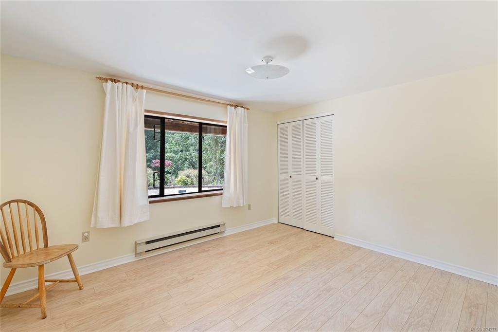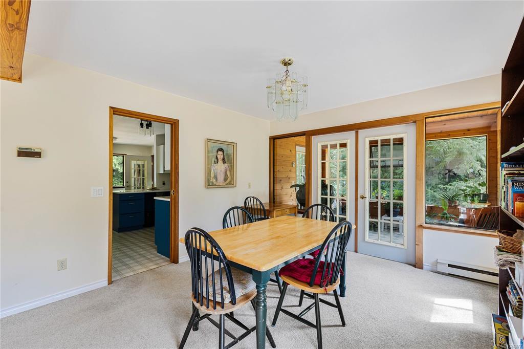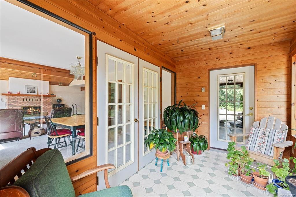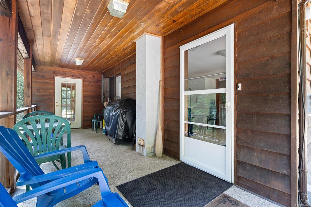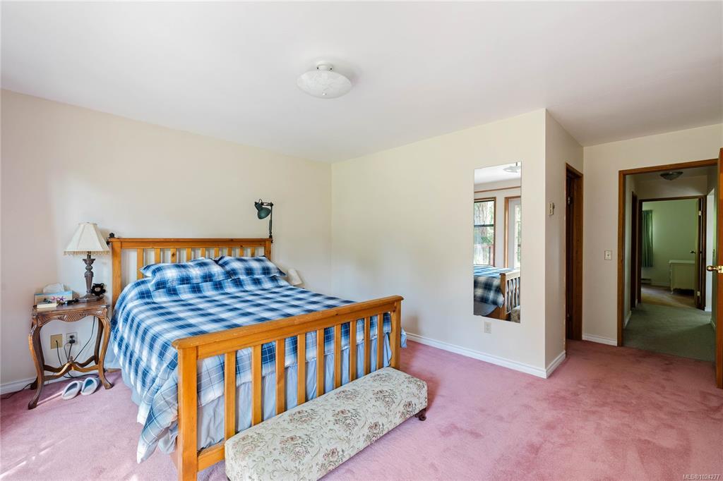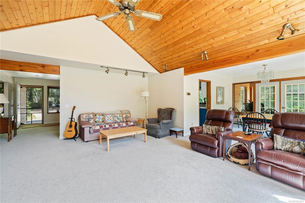Your own secluded island sanctuary offered for the first time on the market. This outstanding estate is nestled on nearly 10 acres of sun-drenched, private land, with nearby shoreline access via the scenic Jack Foster Trail bordering the property. The well maintained, thoughtfully designed home harmonizes beautifully with its natural surroundings, offering efficient main-level living and stunning views over a large pond, lush perennial gardens, and fruit trees. West Coast charm shines with wood accents, vaulted ceilings, and a cozy fireplace, while the lower level provides a welcoming guest area. Relax on the sun decks and tranquil patio sitting areas, or retreat to the charming two-level substantial, guest cottage, with its own private location. A separate studio offers the perfect space for creative pursuits or a quiet workspace and in addiition, there is a triple care garage. Serenity, peace and quiet in a secluded natural setting close to the beach equals the perfect island haven.