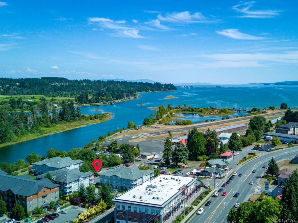 Welcome to The Tides, a well-maintained three-building development in an enviable riverfront location beside the Courtenay Air Park and Marina. Enjoy a scenic riverfront walkway right at your doorstep and the convenience of being within walking distance to shopping, restaurants, and coffee shops. This 2 bedroom, 2bathroom ground-floor condo offers 878 sq. ft. of comfortable living with no stairs or elevators to navigate. Tile flooring welcomes you in the entry, kitchen, and bathrooms, while laminate flooring flows through the dining and living areas. The cozy living room features an electric fireplace and direct access to a private patio, perfect for enjoying your morning coffee. The primary bedroom includes a walk-in closet and a 4-pieceensuite. A dedicated laundry/storage room is equipped with a newer washer and dryer. Secure underground parking is included, though with this location you may find yourself walking more than driving.