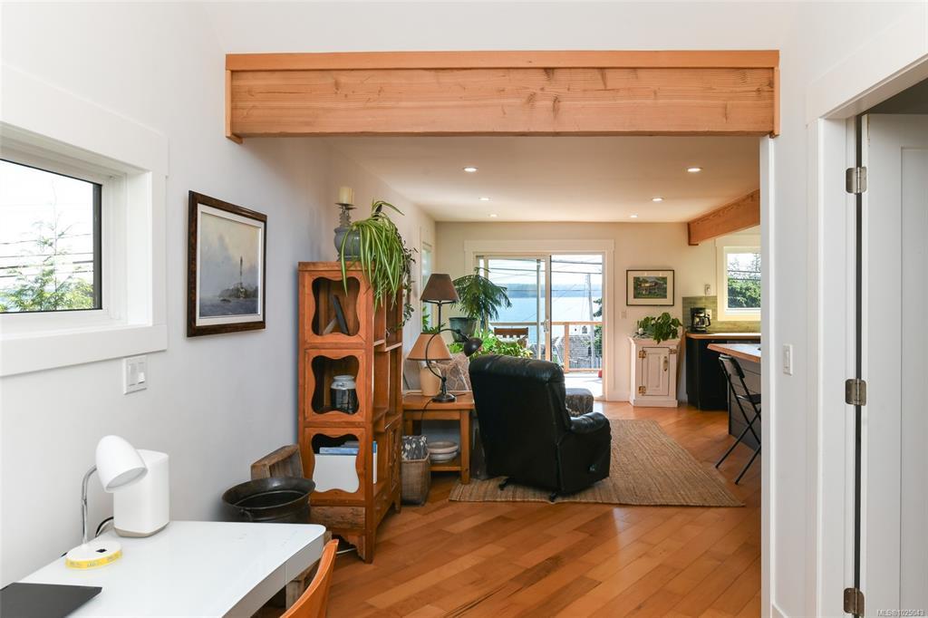 Welcome to your dream home! This detached, standalone Union Bay residence offers the perfect blend of affordability and stunning ocean views. Featuring 2 bedrooms, including a versatile lower level with future potential to create your own vision. The bright airy upstairs highlights thoughtful renovations including upgraded windows, doors and insulation, a functional chef inspired kitchen with farmhouse sink, premium fixtures, roll out drawers in cabinets and pantry. New plumbing and electrical throughout, engineered maple hardwood, porcelain tile entries, natural open fir beams, vaulted ceilings, recessed lighting, and 5 piece spa inspired bathroom. Entertain with ample outdoor decks, gas hookups for both BBQ and Fire Table. A compact, low maintenance lot will compliment your active lifestyle with storage for your bikes, boats, cars etc. There's even a 30 amp RV outlet. Exceptional value for stand alone ocean view property at the price of a townhome without the hassle of monthly fees.