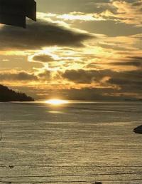 Inside, vaulted ceilings and a wall of windows for natural light, complemented by fresh flooring, paint, and updated fixtures. The dining room offers the best seat in the home, where morning coffee comes with sunrise views over the ocean to the east. To the west, peaceful treed and hillside views create a natural backdrop with frequent bird and deer sightings.