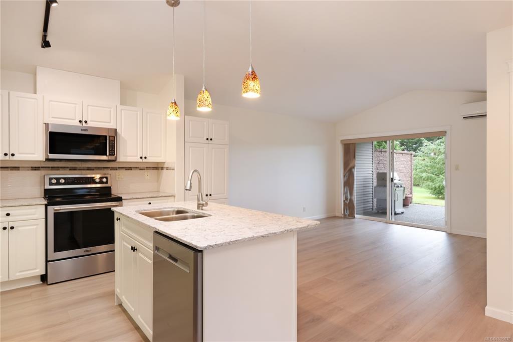 Very nicely updated 2 bedroom/2 bathroom patio home in well situated Heather Glen in East Courtenay. Brand new updates include new flooring throughout, new modern paint job, new ductless air conditioners (2), newer appliances and new granite countertops. Super private rear patio with natural gas BBQ hook-up and boasting no traffic noise and just 2 minutes to Thrifty's, Quality Foods and the Aquatic Centre, Heather Glen is a gated complex for additional peace of mind. Rounded out with in-floor radiant heating in the kitchen/living room, oversized single garage with extra shelving and room to park 3 vehicles, come and see this extremely clean and well cared for home in an extremely well managed complex