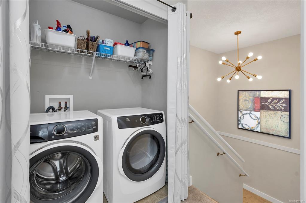 This bright, showhome condition, 3-level townhome is ready for your family to move-in. Situated in a desirable spot in the complex with forest views, this beautifully modernized home has seen many updatees, including: professionaly painted,all new appliances, carpet, laminate flooring, lighting, and window coverings. Each room has Ethernet ports built-in. The main floor boasts an open-concept floor plan, centered around the kitchen. The Dining area provides access to the sunny deck. Upstairs, you will find three bedrooms, including the primary suite with ensuite, a third bathroom, and conveniently located laundry. The lower level provides a large entry and double garage. An ideal location for families, close to all levels of schools, including North Island College. Close proximity to shops at Timberline Village, trails at Beaver Lodge Lands, and walking distance to the Sportsplex. Pets and rentals allowed. This is a rare opportunity not to be missed.