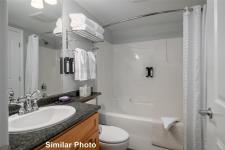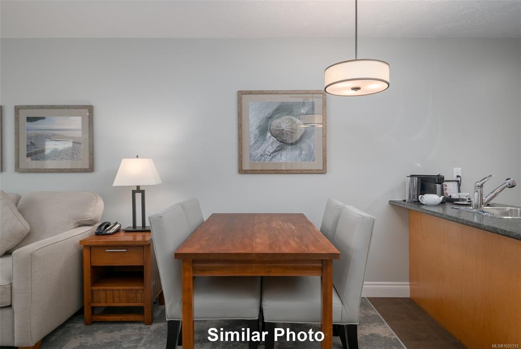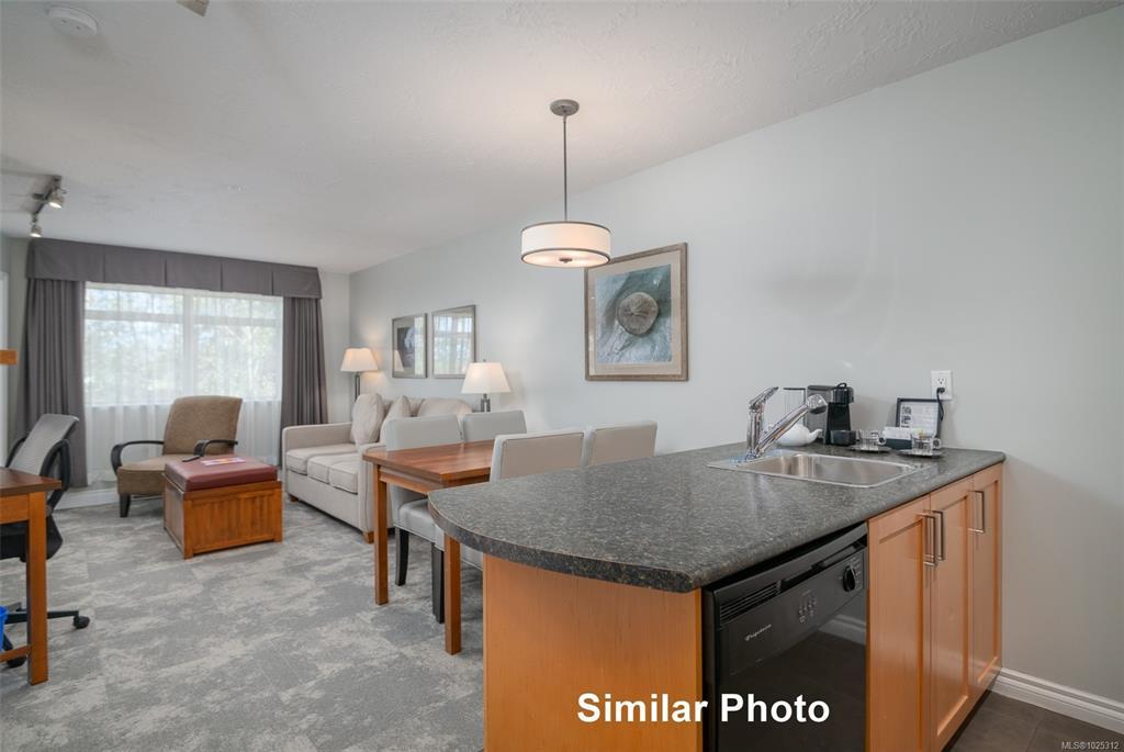 Quarter ownership at the Old House Hotel in the beautiful Comox Valley offering majestic mountains, sunbathed beaches, championship golf greens, gorgeous rivers, secluded lakes, the magnificent ocean and various activities from skiing, fishing, boating, kayaking, golfing, etc. This is a great opportunity for anyone who would like to have a recreational property without the hassle of having to take care of it. The Old House Hotel is an upscale resort centrally located in Courtenay offering underground parking, meeting facility, luxurious spa, outdoor pool & hot tub area. This unit is located on the ground level facing West and offers a 1 bedroom plus sofa bed, 1 bathroom, a full kitchen, in suite laundry & flat screen TV’s. This opportunity is not intended to be lived in full time. Strata fees ($192.88) & owner's assoc. ($233.44) fees plus GST is payable each month. Managed and rented out by Hotel Mgmt Co with the owners receiving a revenue statement every 3 months.