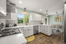 Tucked in a quiet seaside neighbourhood on a 0.31-acre lot, this 1,700+ sqft rancher offers 4 bedrooms & 3 bathrooms, plus a dream detached shop with a 2 pce bathroom—just a 400m walk to the beach & 2 minutes to Storey Creek Golf Course. A standout feature is the renovated left wing with a 4th bedroom + 3rd bath, separate side access & its own driveway—ideal for a home business, office, studio, or private guest space. Comfort upgrades include heated tile floors (baths & laundry), a bright white country kitchen with quartz countertops & stainless appliances (2017), plus a gas range, 2 gas fireplaces, hot water on demand (2021) & a gas BBQ hookup. Major updates are complete: septic tank & field (2021), windows/doors (2017), metal roof (2006) & an updated electrical panel. Outside features two large driveways, 30-amp RV power & sani dump, a family-friendly yard, & a garden shed with mezzanine—peace of mind, versatility, & an unbeatable coastal location with all the heavy lifting complete.