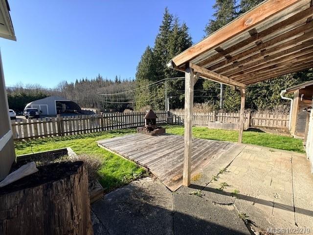 Delightful 2 bedroom one bathroom mobile home in Port McNeill. Fabulous location at the end of Betts/Chelan/Patterson. Back yard is fully fenced, complete with wired workshop, wood stove area and greenhouse(formerly a playhouse), Lovely covered deck off kitchen. Good size mud room at the main entrance - perfect for storage or kids toys. Above average size bedrooms. Living room has certified (2026) wood stove. Kitchen has plenty of cupboards and counter space. If your looking