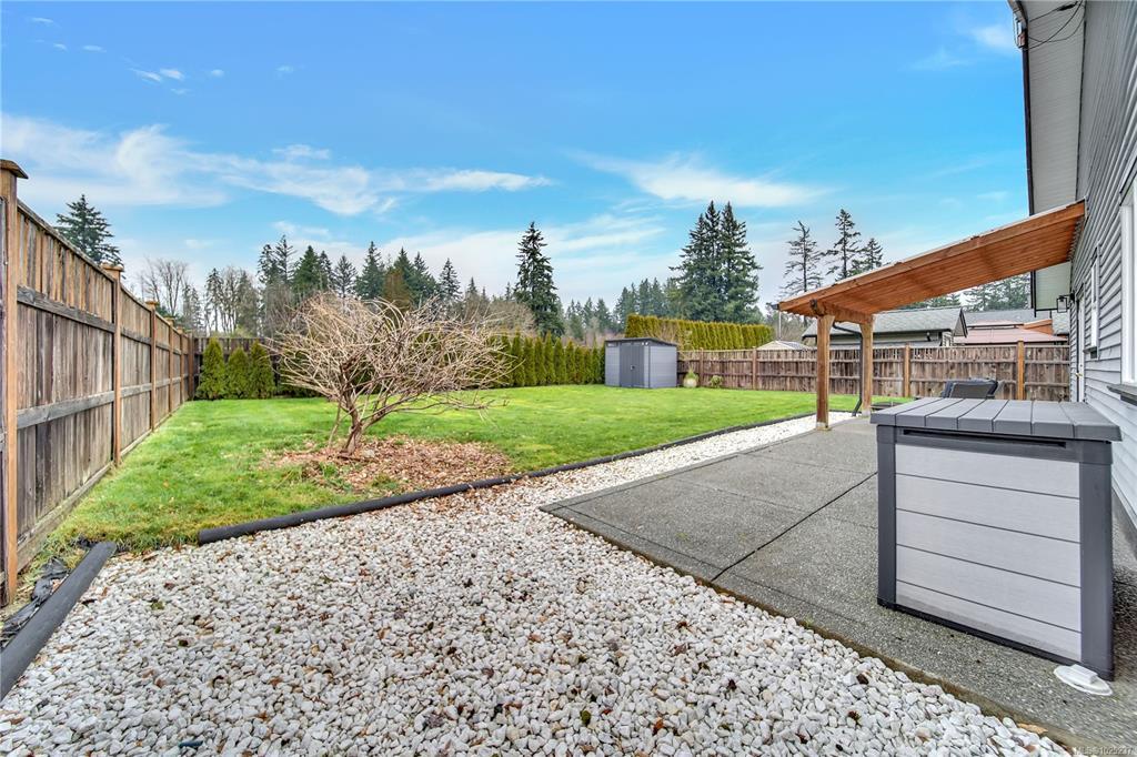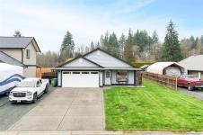Move in ready, newer 3 bedroom, 2 bathroom rancher in a sought after neighborhood tucked away at the edge of town! This home sits on a large 0.18 acre lot. Many upgrades including a ducted furnace & heat pump, granite counters, tile backsplash and additional concrete patio & walk way areas. The modern layout offers functionality with an open living area, direct access to the spacious & private backyard, a laundry room and a double garage. The primary suite looks out to the backyard with an ensuite bathroom & walk in closet. Additional yard or storage space on both sides of the house, plus RV/boat parking as well. This is the ONLY newer non-strata single family rancher currently for sale in Port Alberni, book your showing today!