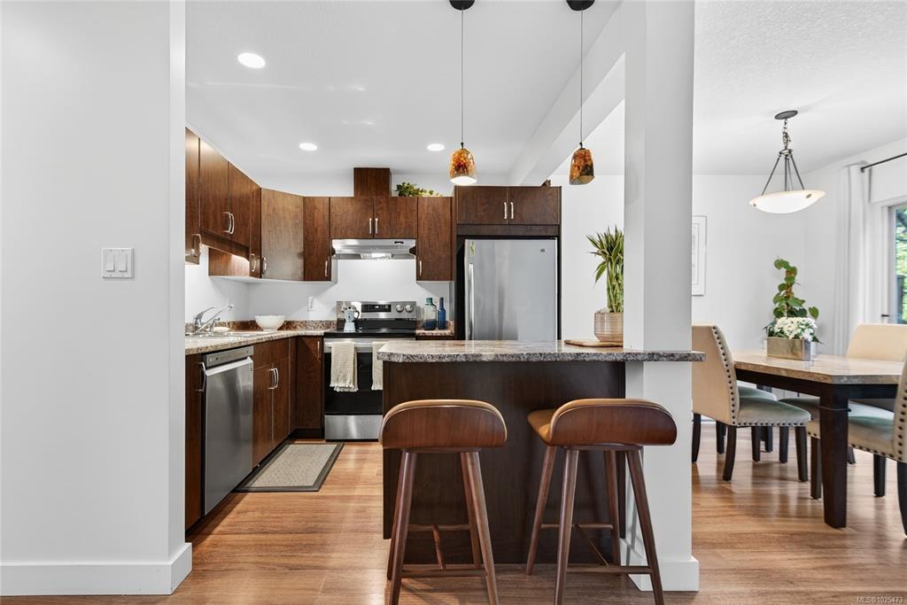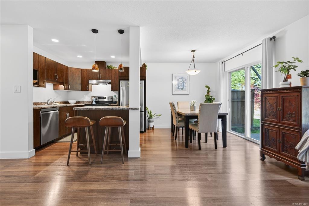 Discover this beautifully updated 3-bedroom, 3-bathroom townhome in Steam Engine Estates, one of Cumberland’s most sought-after developments. With over 1,400 sq ft on two levels, the open-concept main floor offers efficient kitchen, dining, and living spaces—perfect for family life and entertaining—plus a convenient renovated bathroom and a garage. Upstairs features a spacious primary bedroom with ensuite, two generous bedrooms, and a sunny office or flex space. Entire home was painted and equipped with brand-new washer and dryer. Enjoy a private garage, front patio for a coffee with neighbours and the quiet backyard one backing onto green space, where you can create your own personal oases. Two pets allowed. Steps from world-class trails, mountains, rivers, lakes, ocean, cafés, and village shops—this is Cumberland living at its best for young families, outdoor enthusiasts, and those young at heart. Move-in ready and waiting for its next owner.