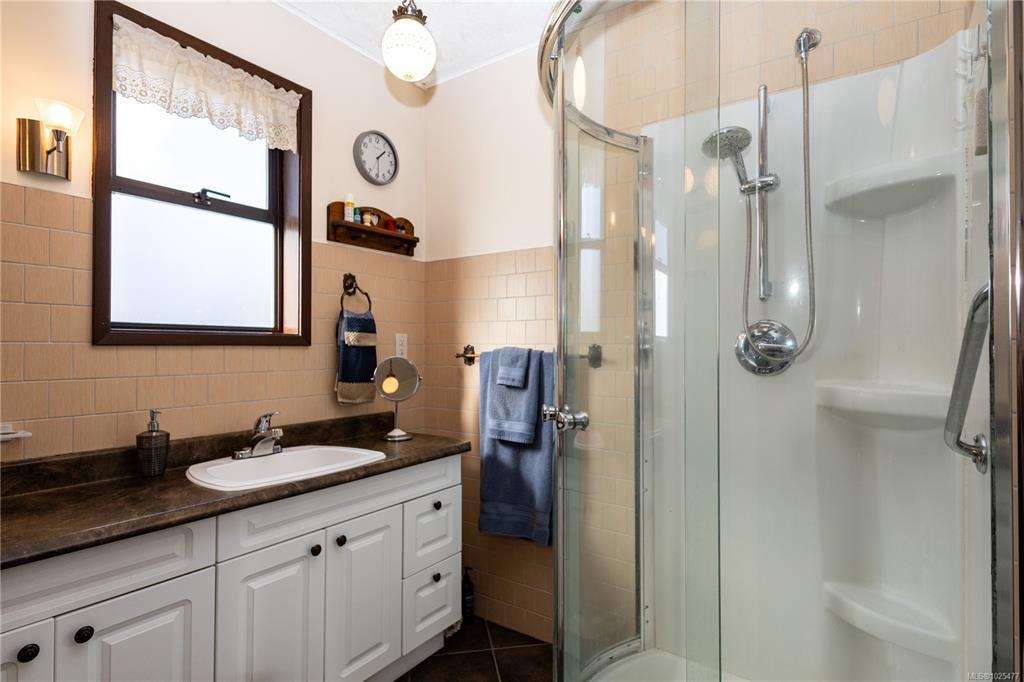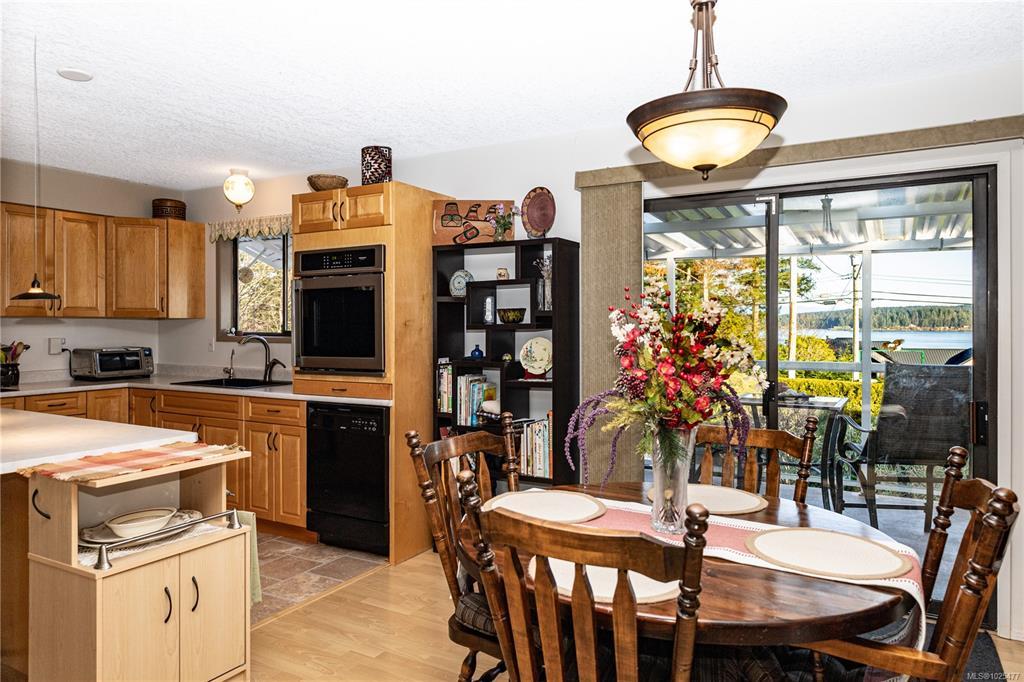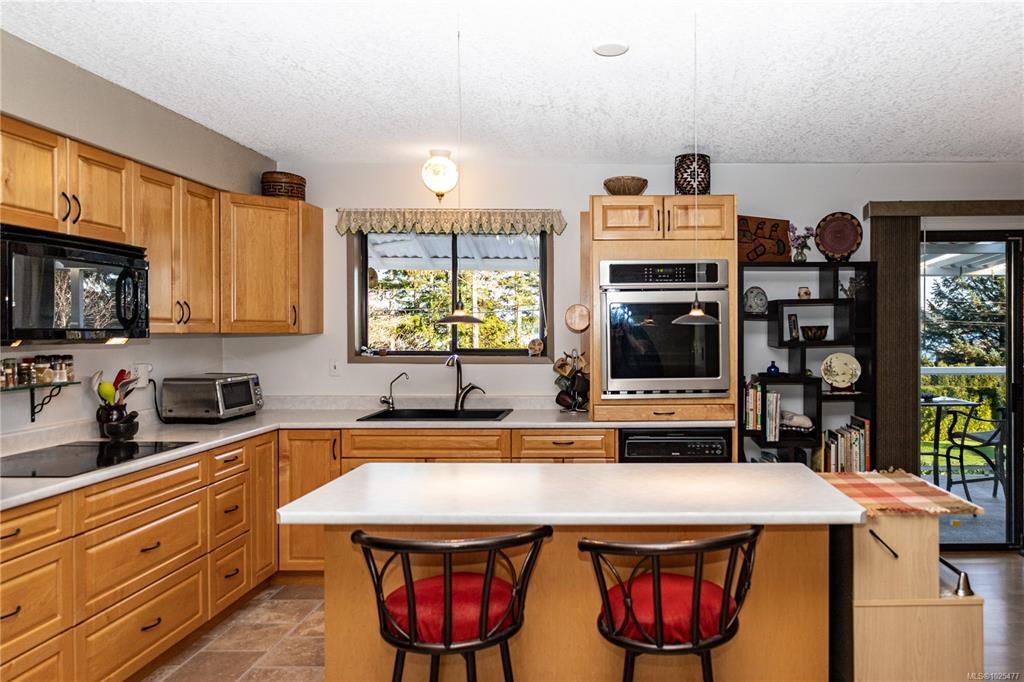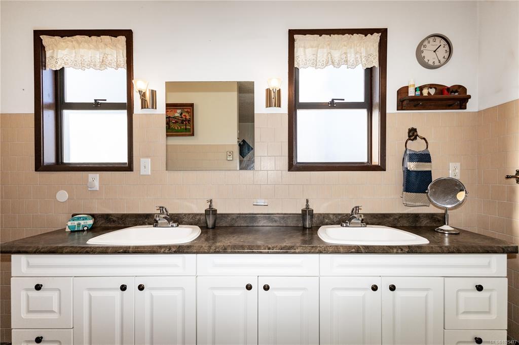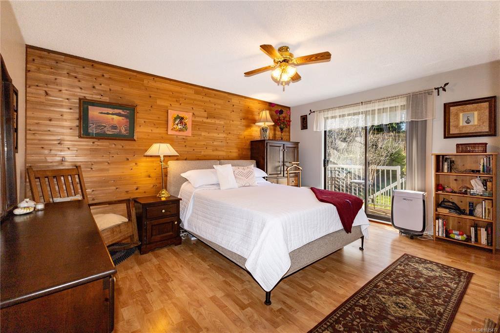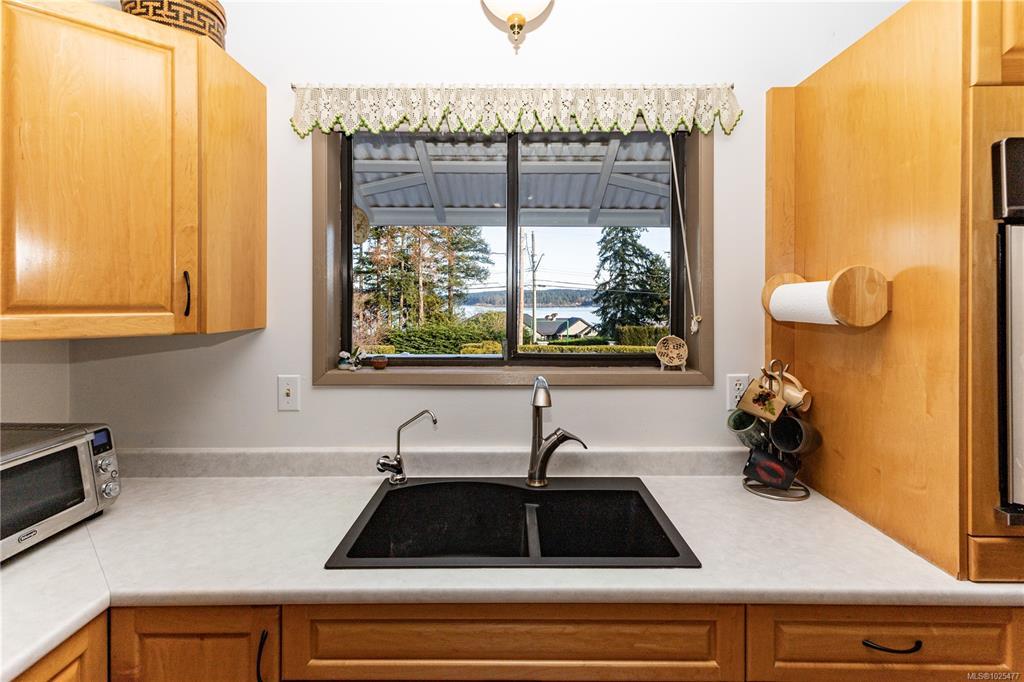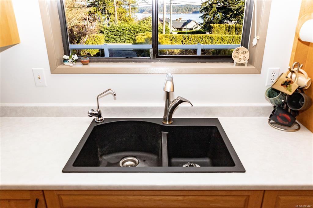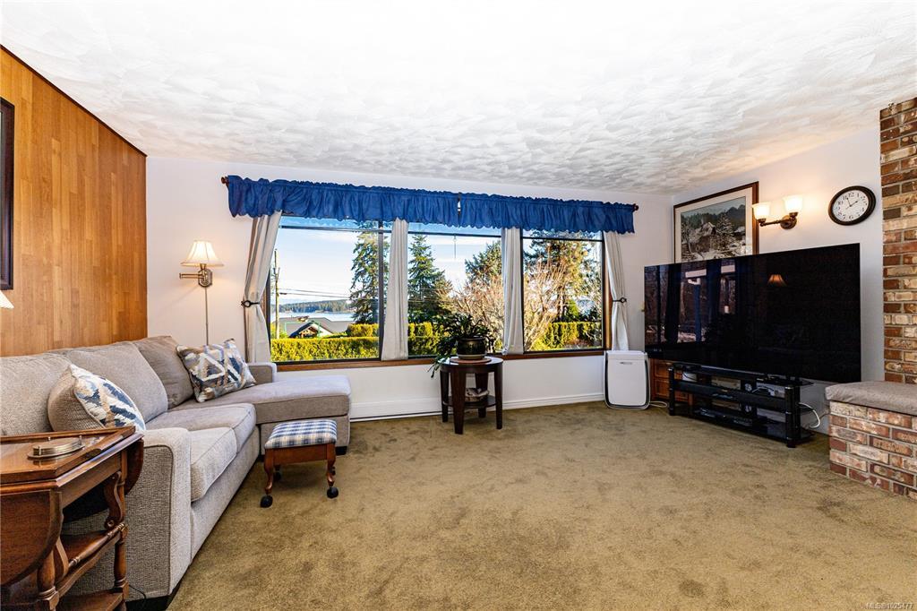 Beautifully maintained ocean view home on .44 acres in the Painter Barclay neighbourhood. 2590 sqft, 4 or 5 bedroom, 2 full bath home. Plenty of updates: paint, lighting, remodeled kitchen with nice appliances, some laminate floors & lifetime metal roof. 3 bedrooms upstairs and the primary has slider access to wrap around deck & cheater ensuite. Main bath/cheater ensuite: stand up shower, double sinks, jetted soaker tub & heated floors. The living room & family room both have cozy gas fireplaces. The lower floor features full bath with a Finnish sauna & a family room, den (could be the 5th bedroom), 4th bedroom, storage & access to the double car garage. Beautiful landscaping on the .44 acre lot with front drip irrigation, landscape cloth in all the beds, fruit trees, flowering shrubs & greenhouse. Extras include: paved driveway with timed lighting, 30 amp RV plug, 2x sani-dumps, water, foundation is poured for a future shop or carriage home (perimeter drains into city storm).