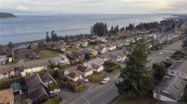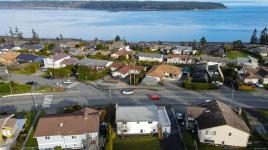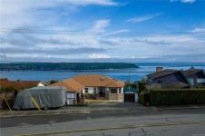 Centrally located in Campbell River, this 3-bedroom, 2-bath home offers expansive panoramic mountain and ocean views of the Strait of Georgia and Mitlenatch Island and across Discovery Passage to Quadra Island and the Cape Mudge Lighthouse - where whales, marine traffic and cruise ships regularly pass. The level entry foyer leads to the main living area upstairs, where the open-concept kitchen, dining and living space maximizes the spectacular scenery. From there, step through the enclosed solarium to access a generous deck and enjoy the views from outside. A two-car garage with a small workshop, plus additional parking outside, is perfect for cars, projects and storage. The fully fenced backyard features established fruit trees and space ideal for family gardening. Within walking distance to shops, schools, and amenities, this property is an excellent opportunity for buyers seeking a practical home in a central location, with exceptional views.