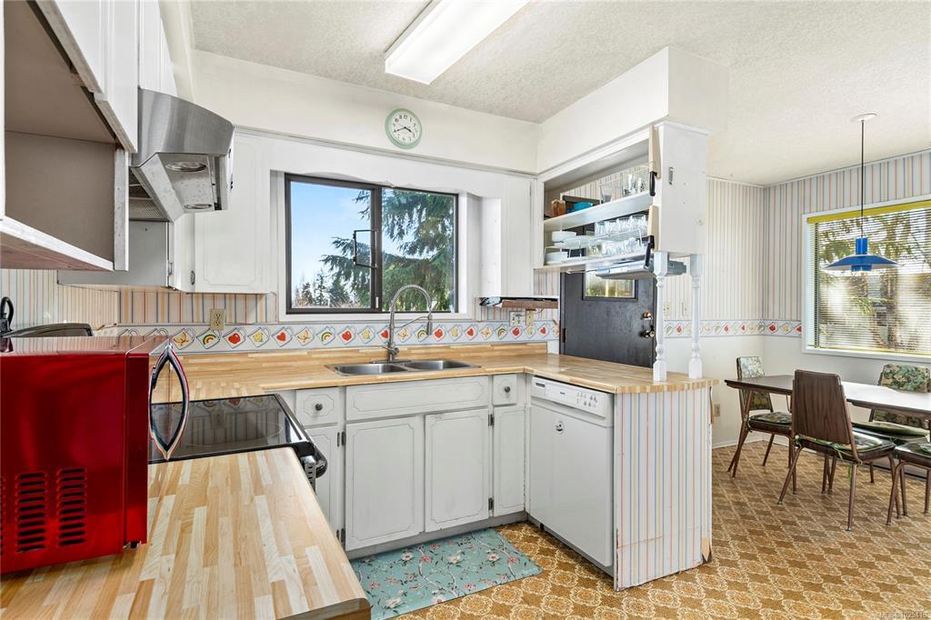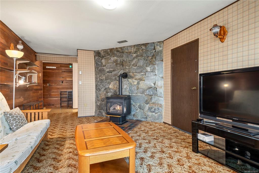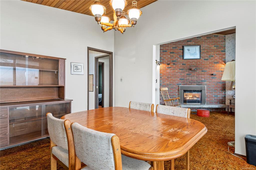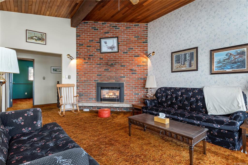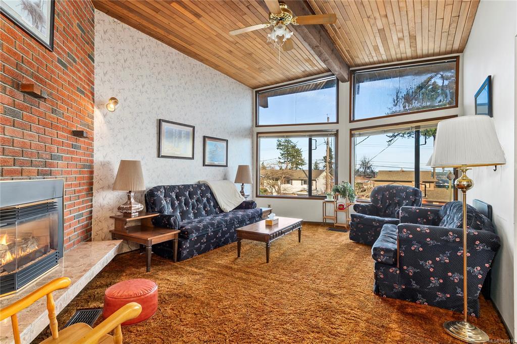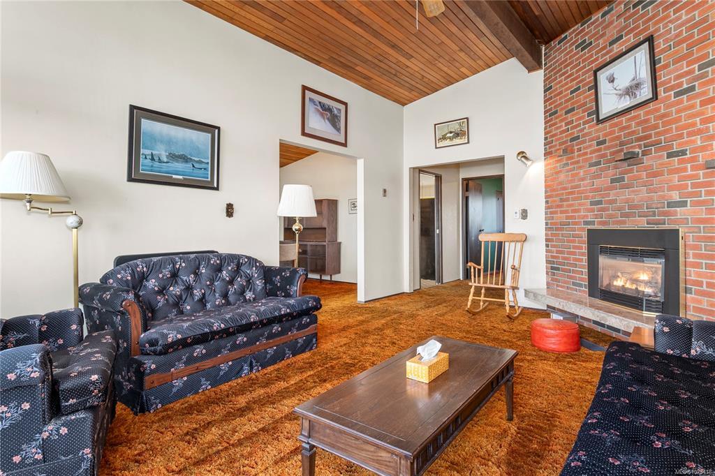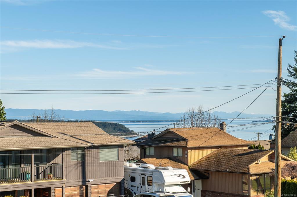 This 4-bedroom, 3-bathroom home offers a great family-friendly layout in a fantastic neighborhood. Featuring a ground-level entry with main living upstairs, the upper floor includes a spacious living room with vaulted ceilings and a gas fireplace, plus a dining room with sliding doors to an oversized front-facing deck with ocean and mountain views. The kitchen connects to a casual eating area with additional deck access and stairs leading to the backyard and lower patio. 3 bedrooms are on the main level, including the primary with a 2-piece ensuite and patio doors to the deck. Downstairs offers a large recreation room with gas fireplace, spacious laundry room with backyard access, full bathroom, and a fourth bedroom that could easily be converted into two. A double garage, ample parking, and a beautiful backyard with established gardens, sprinkler system, blueberry bushes, and a charming garden shed complete the package. Close to schools, shops, and the new recreation center.