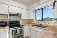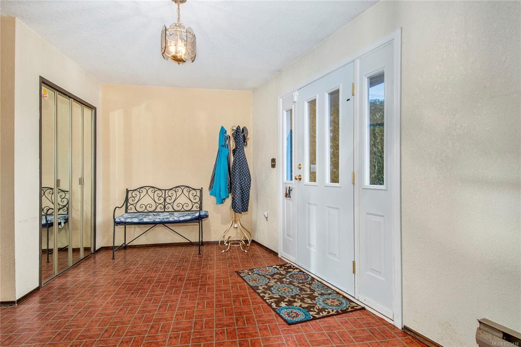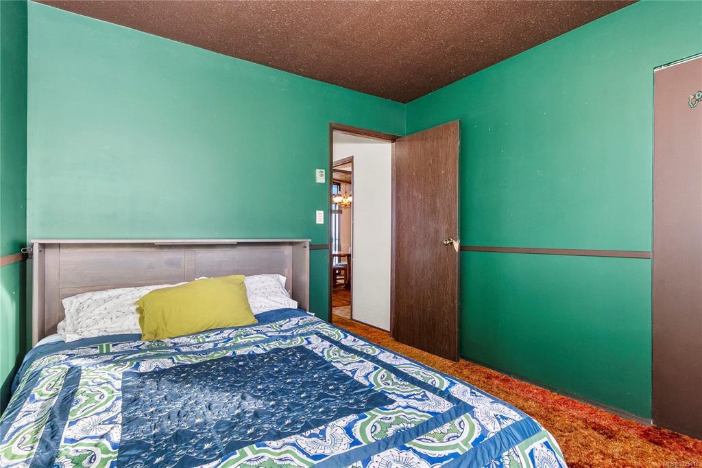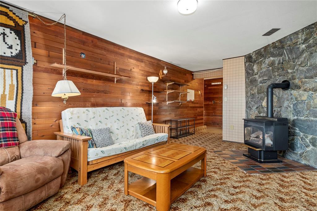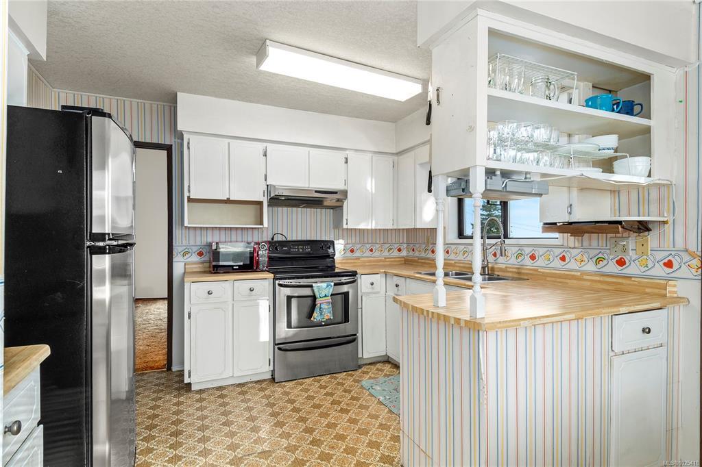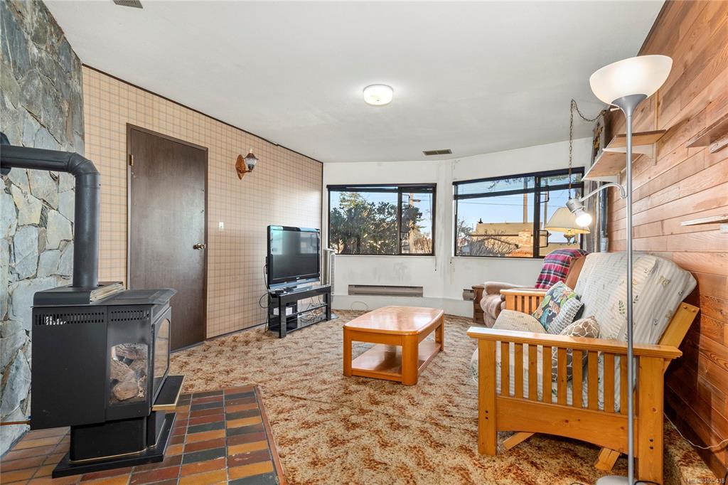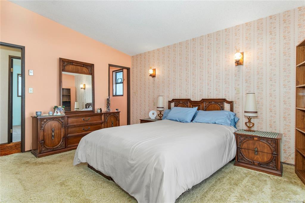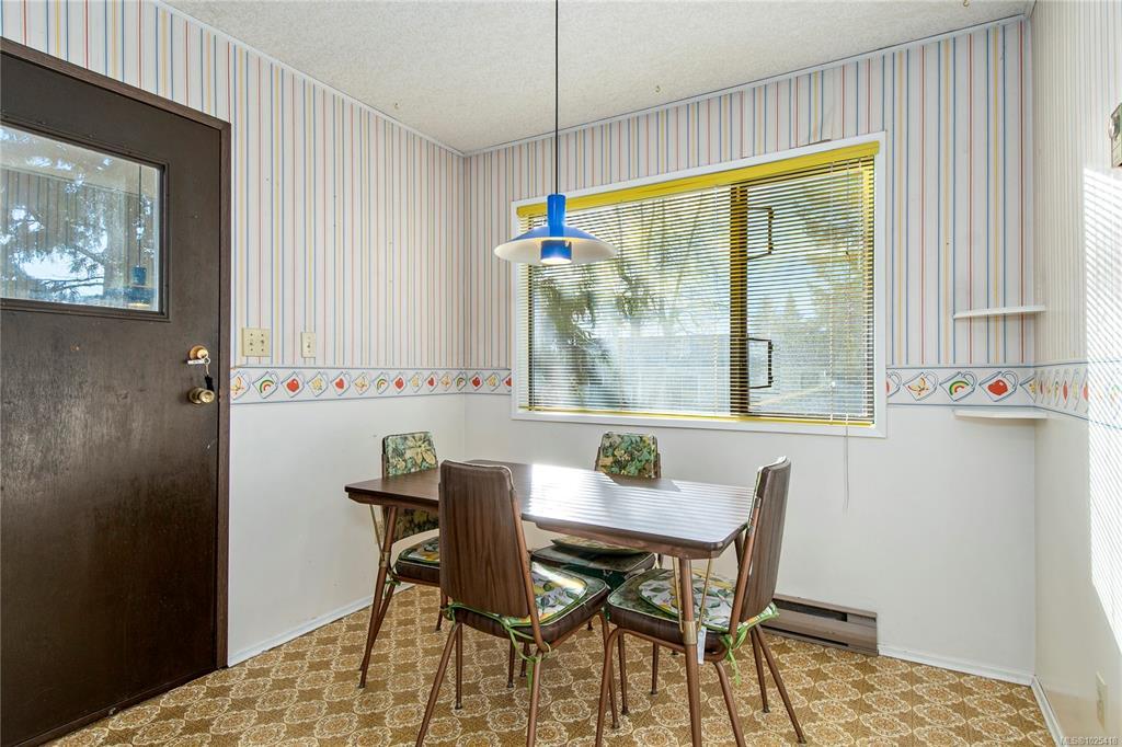 This 4-bedroom, 3-bathroom home offers a great family-friendly layout in a fantastic neighborhood. Featuring a ground-level entry with main living upstairs, the upper floor includes a spacious living room with vaulted ceilings and a gas fireplace, plus a dining room with sliding doors to an oversized front-facing deck with ocean and mountain views. The kitchen connects to a casual eating area with additional deck access and stairs leading to the backyard and lower patio. 3 bedrooms are on the main level, including the primary with a 2-piece ensuite and patio doors to the deck. Downstairs offers a large recreation room with gas fireplace, spacious laundry room with backyard access, full bathroom, and a fourth bedroom that could easily be converted into two. A double garage, ample parking, and a beautiful backyard with established gardens, sprinkler system, blueberry bushes, and a charming garden shed complete the package. Close to schools, shops, and the new recreation center.