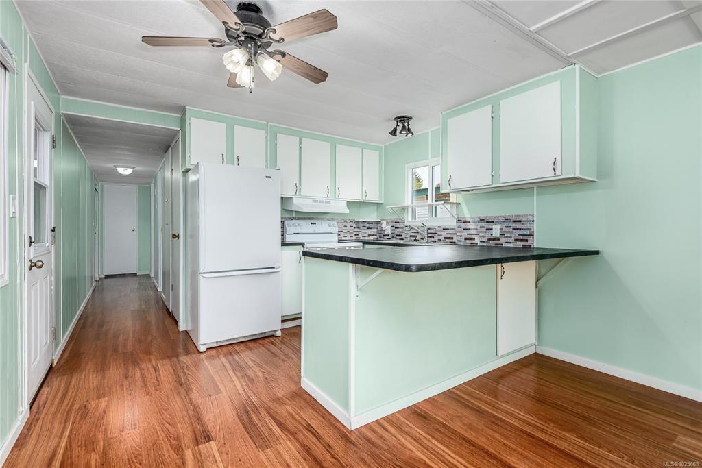 Welcome to this charming manufactured home in the heart of Courtenay! Offering over 600 sq ft of comfortable living space, this 2-bedroom, 1-bath home is perfect for first-time buyers, downsizers, or investors. The bright, open-concept kitchen and living area create a warm and inviting atmosphere, ideal for everyday living and entertaining. Enjoy the added convenience of an enclosed entry porch-perfect for extra storage or a cozy sitting area. Centrally located close to shopping, restaurants, and recreation, this affordable home provides an excellent opportunity to own in a desirable area. Don't miss your chance to make this great starter home your own!
