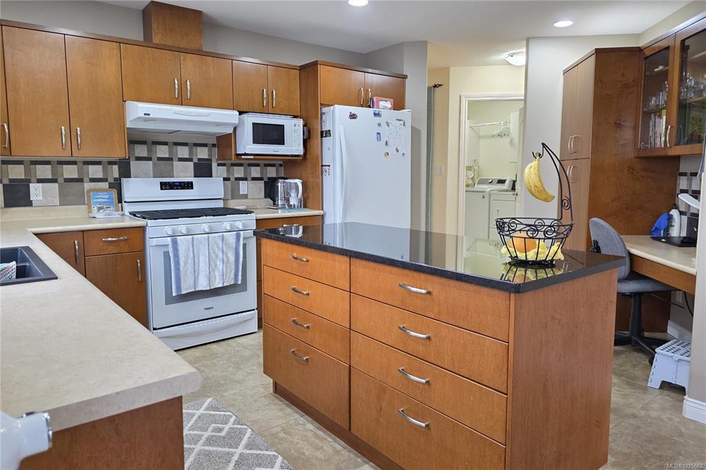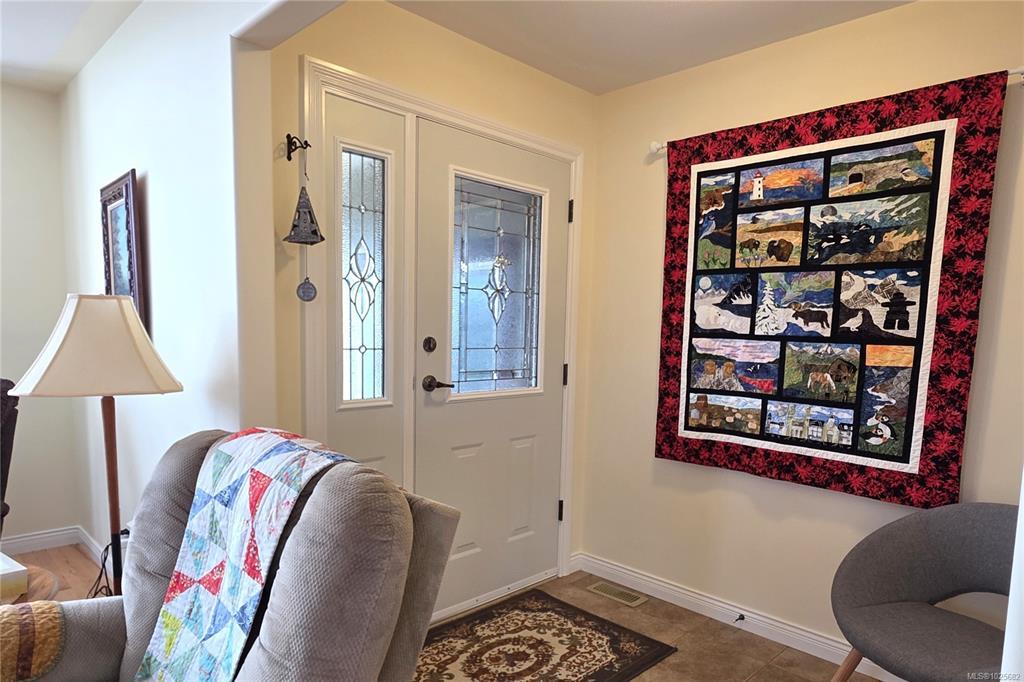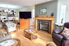 Custom built 3 bedroom 2 bath rancher with bonus room beautifully crafted to the owner's specifications. Every detail from the lovely 2" sold maple floors throughout, to the functional overheight garage, to the practical 40'x11' concrete RV pad with water, 30 amp power and sani was designed with style, comfort, and practicality in mind. Cozy upto the gas fireplace in the living room with big south-facing bay windows. The primary bedroom features a full ensuite with jacuzzi soaker tub and and kitchen has oodles of maple cabinets, a built-in desk area and a stylish tile backsplash. enjoy additional features such as the gas stove and convenient family room/eating nook overlooking the tastefully landscaped backyard. Take advantage of the ocean & mountain views from your 21'x8' covered patio year round. The crawl space is heated and insulated for your winter comfort and the newer heat pump will keep you cool in the summer. Top it off with a brand new roof and this is the full package