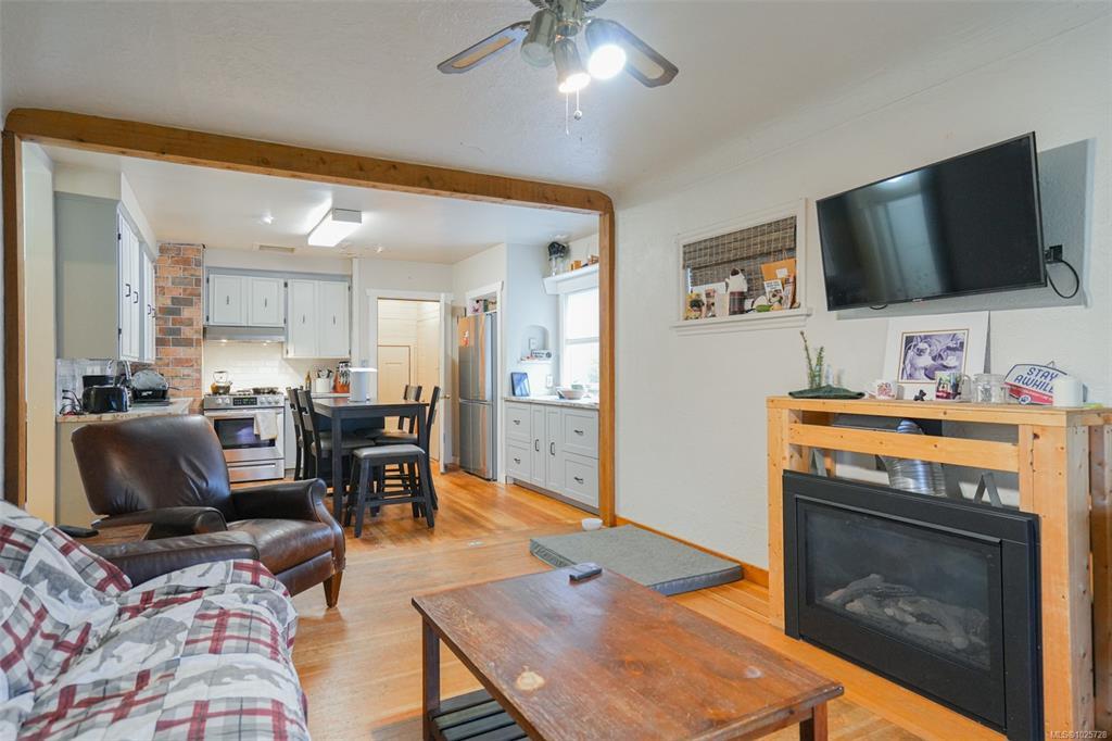 Perfect for first-time buyers or investors, this 2-bedroom (with room for a 3rd), 1-bath home offers strong value and flexibility. The main level features wood floors, an open-concept living area, a gas fireplace, and a full 4-piece bathroom. The basement is a blank canvas with ample space to construct a third bedroom, additional living area, or keep as storage. The basement also provides access to the yard with basement walkout/drive-in doors (perfect for covered parking for your toys). The home features a durable metal roof, hot water on demand, and a newer furnace installed in 2021. Outside, enjoy raised garden beds, a covered patio with a gas-powered firepit, and a fully fenced front/back yard. Alley access provides excellent parking options, including room for RVs and boats. Located just steps from Weaver Park, this property combines a prime location with future potential—an excellent opportunity for the right buyer. Book your showing today. Virtual tour available.