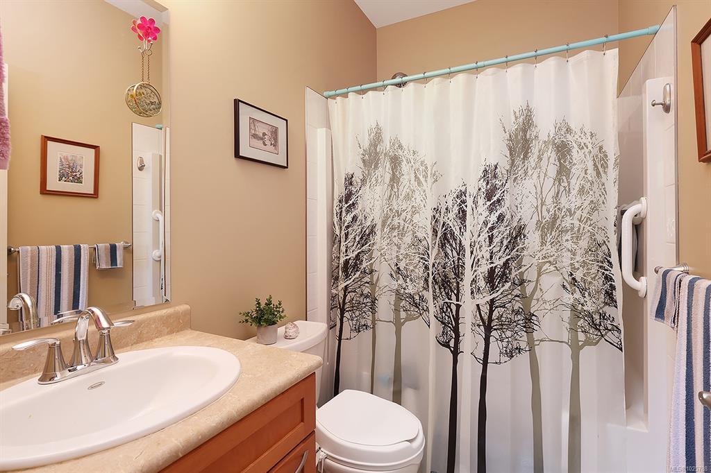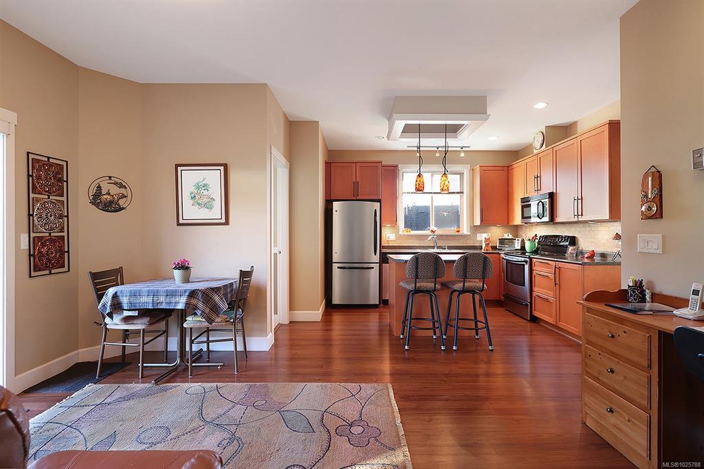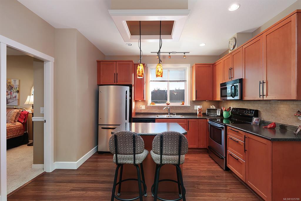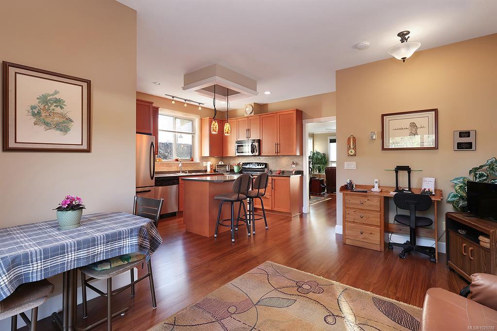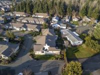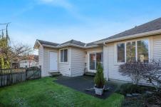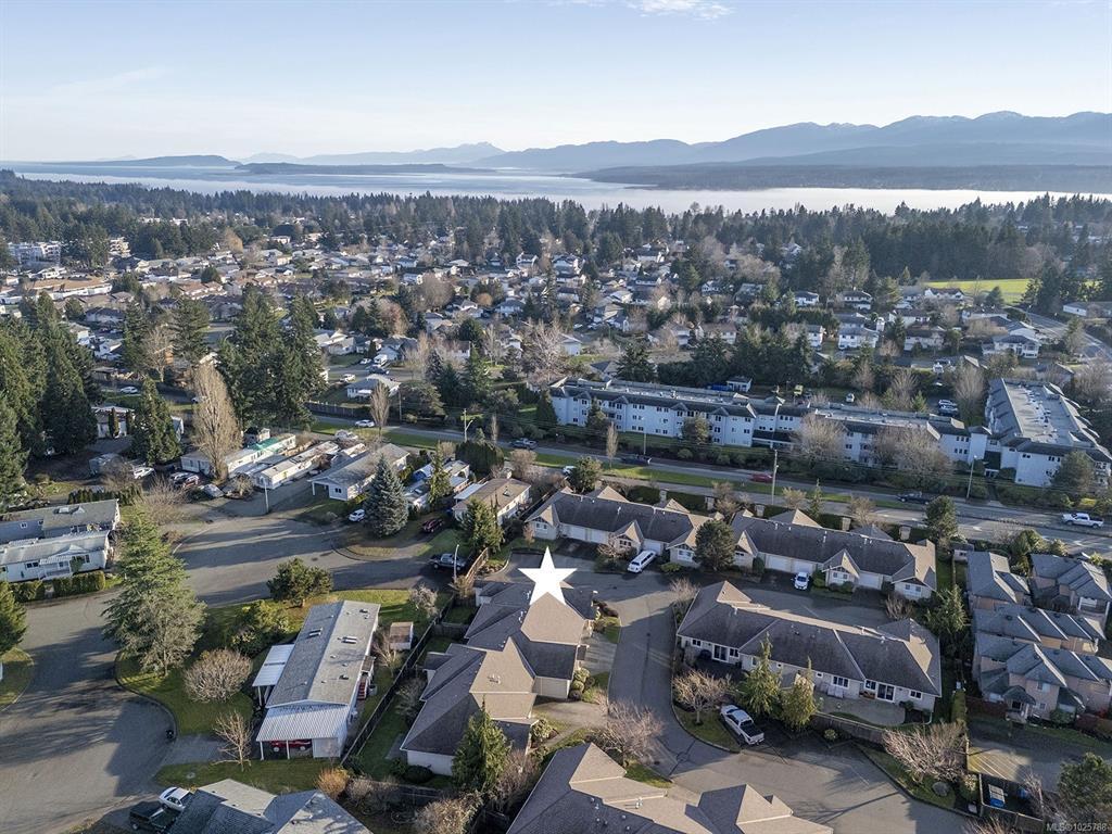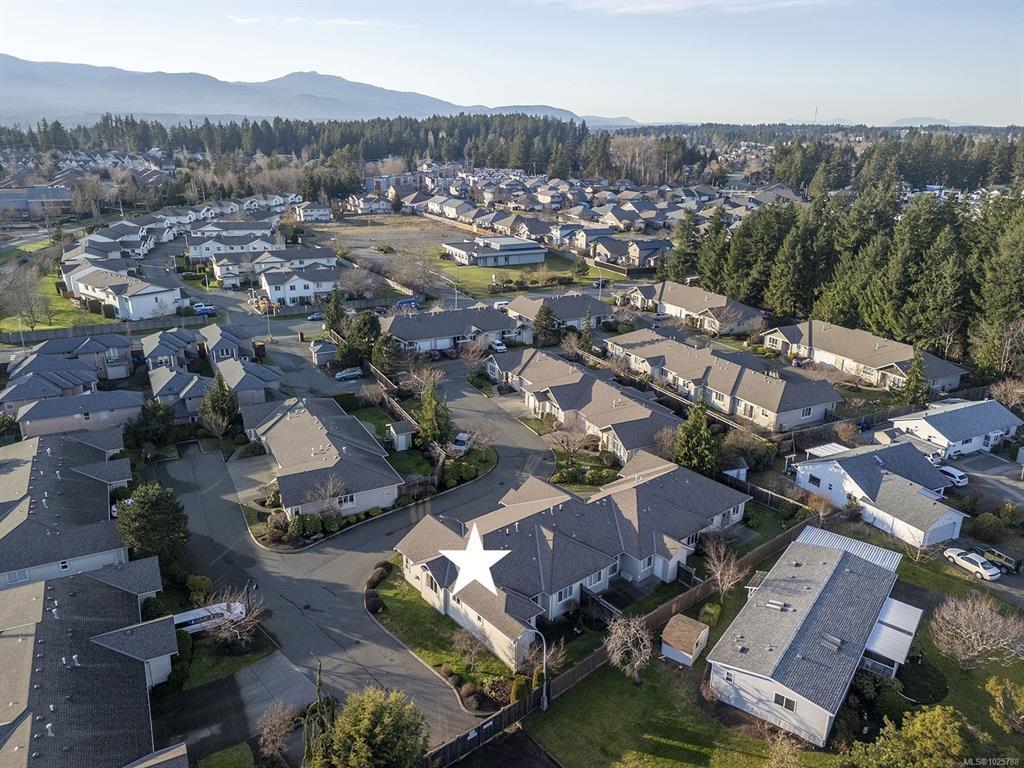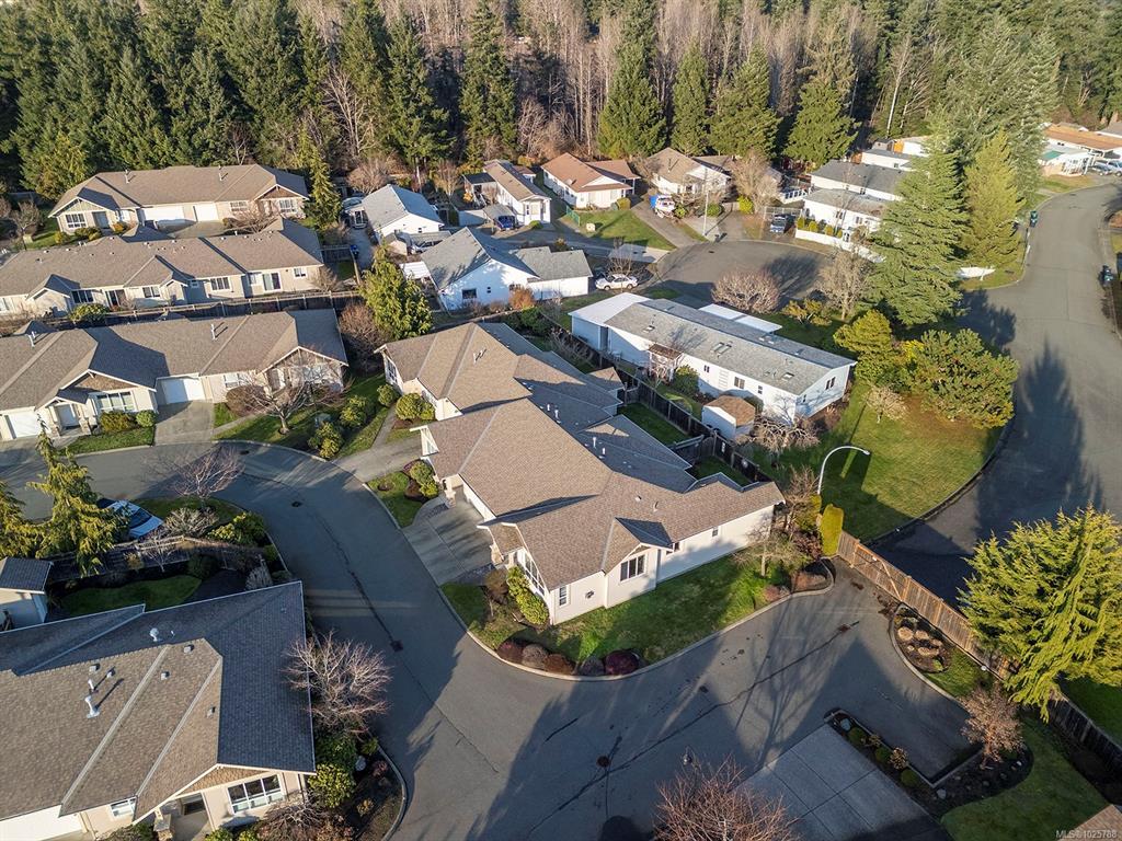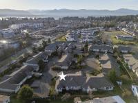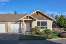 Premier corner unit with full sun exposure and a fenced yard! Located in Aspen Wynde, a charming community of one-level patio homes in Comox. This lovely unit, 2 BD/ 2 BA, 1,140 sf, built in 2008, boasting 9’ ceilings, gas fireplace, crown moulding and large windows illuminating a spacious plan. A generous sized master bedroom w/ walk-in closet & 4 pce bath w/ an easy step into shower, & a guest room that could be a home office or craft room. A well-designed kitchen offers a window over the sink, maple shaker cabinets, & an island with seating for guests. The adjacent family/media room offers sliding door access to the fully fenced private patio, ideal for morning coffee in the sun or cool shade on a hot summer day. With a small storage room for golf clubs, bikes, etc., and a single car garage, energy efficient gas forced air furnace and gas H/W tank – 2025. There are no age restrictions, 1 dog or 1 cat. Located near transit, a short stroll to Quality Foods & Land and Sea Brew Pub!
