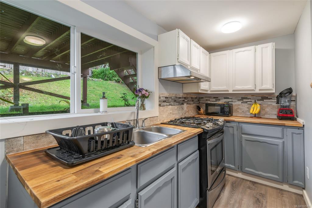 Located in a quiet South Alberni neighbourhood with beautiful mountain views, this thoughtfully updated home offers space to gather and room to grow. The main level welcomes you with a sun-filled living room, where a natural gas fireplace and west-facing window create a warm place to unwind. The kitchen, finished with new shaker cabinetry, backsplash, countertops, and a natural gas stove, connects seamlessly to the eating area and newly painted deck - perfect for evening dinners overlooking the fully fenced backyard with laneway access. The primary bedroom includes an updated 2-piece ensuite, with two additional bedrooms and a refreshed full bath nearby. New vinyl thermal windows, flooring, and paint add a fresh feel. Downstairs, the 1-bedroom in-law suite with separate laundry, generous kitchen, full bath, and fireplace offers flexibility. Close to the Maquinna trails, schools, shopping, and recreation. Reach out whenever you’re ready to arrange your private viewing.